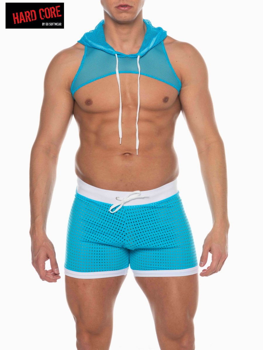 Hard Core Turquoise Tryst Mesh Hooded Harness