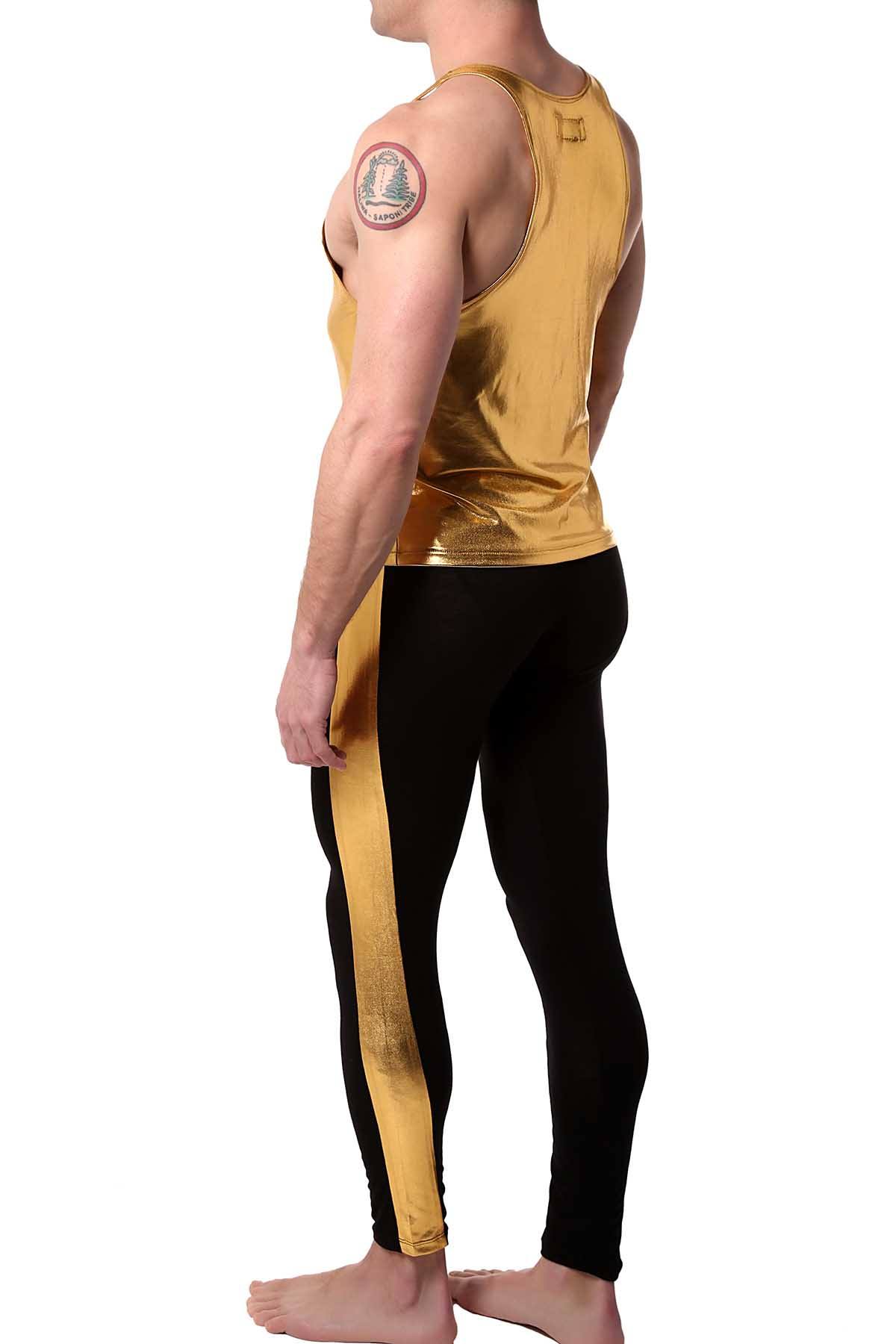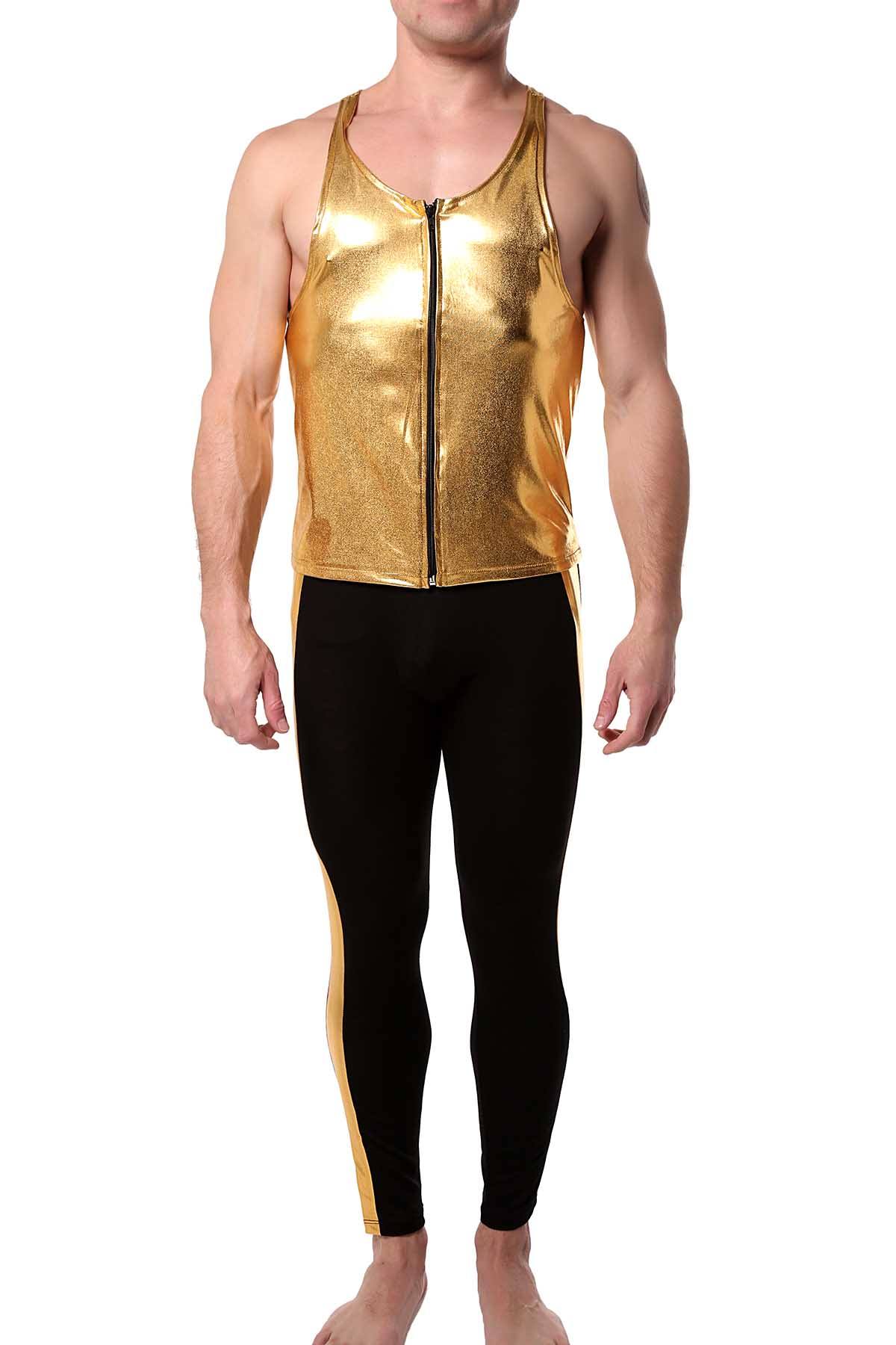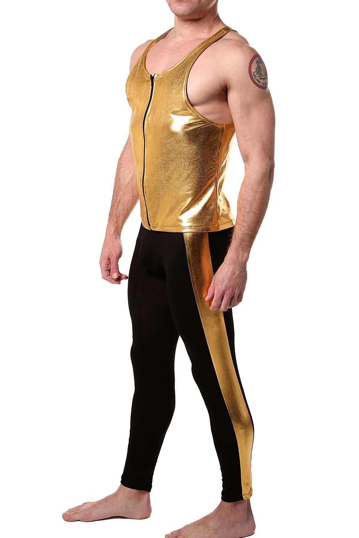 - This popular vest design by HARD CORE Label is constructed in 4-way stretch poly/spandex fabric in a dazzling gold metallic or “Foil” finish.