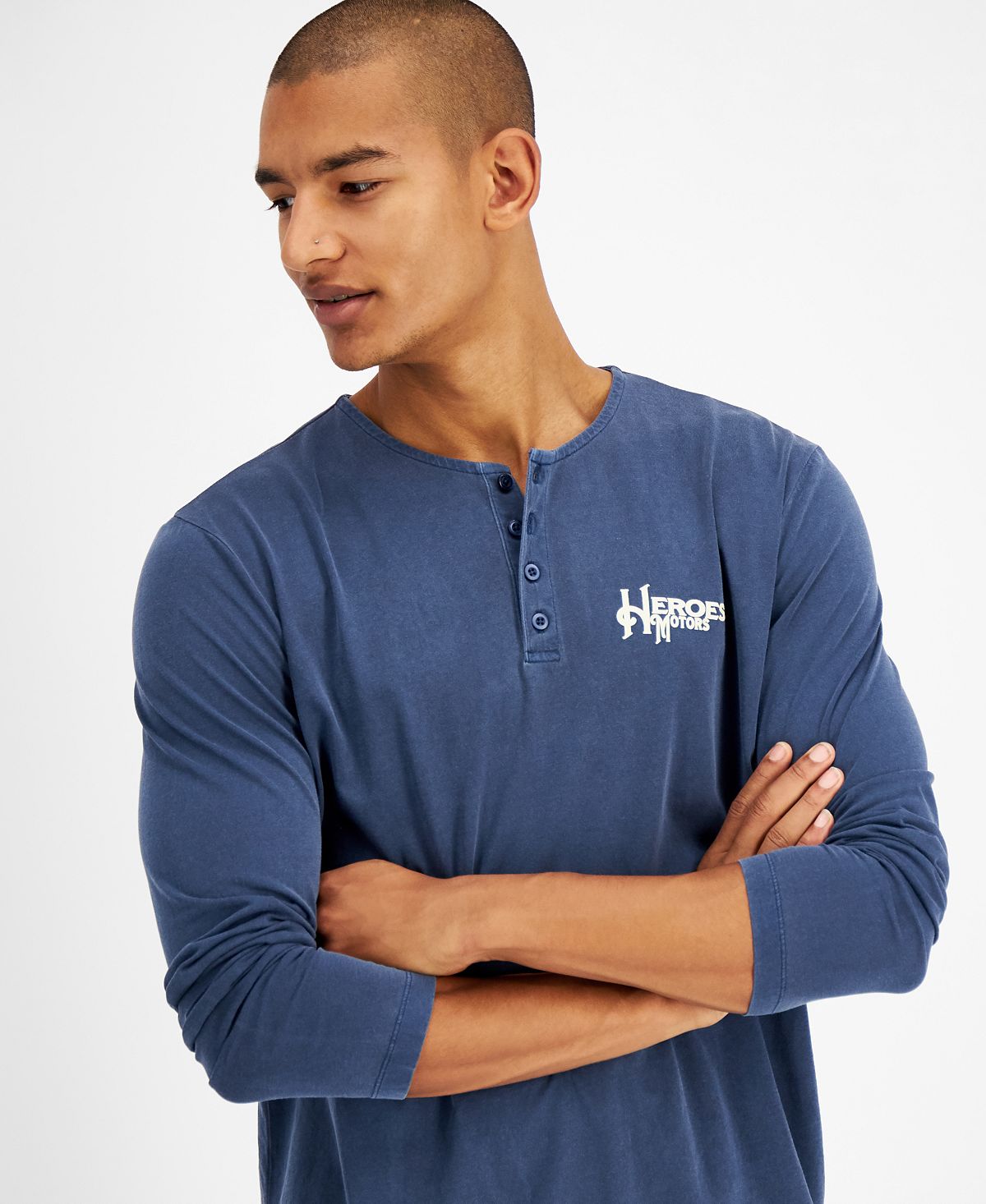 Heroes Motors Classic Seven Graphic Long-sleeve Henley Shirt Blue