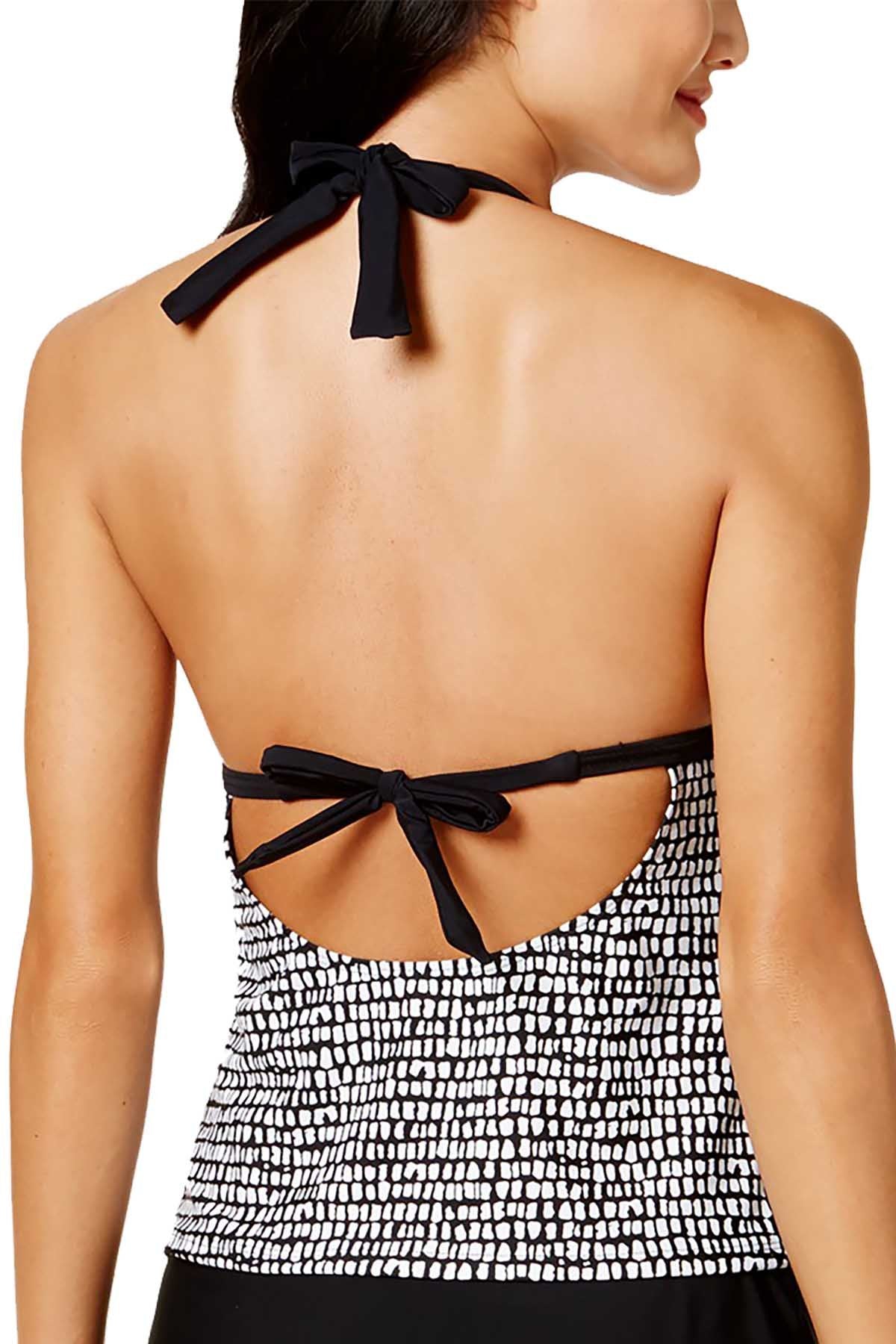 - Freshen your look with this top from Hula Honey, a halter tankini with an open back and sophisticated print.