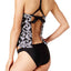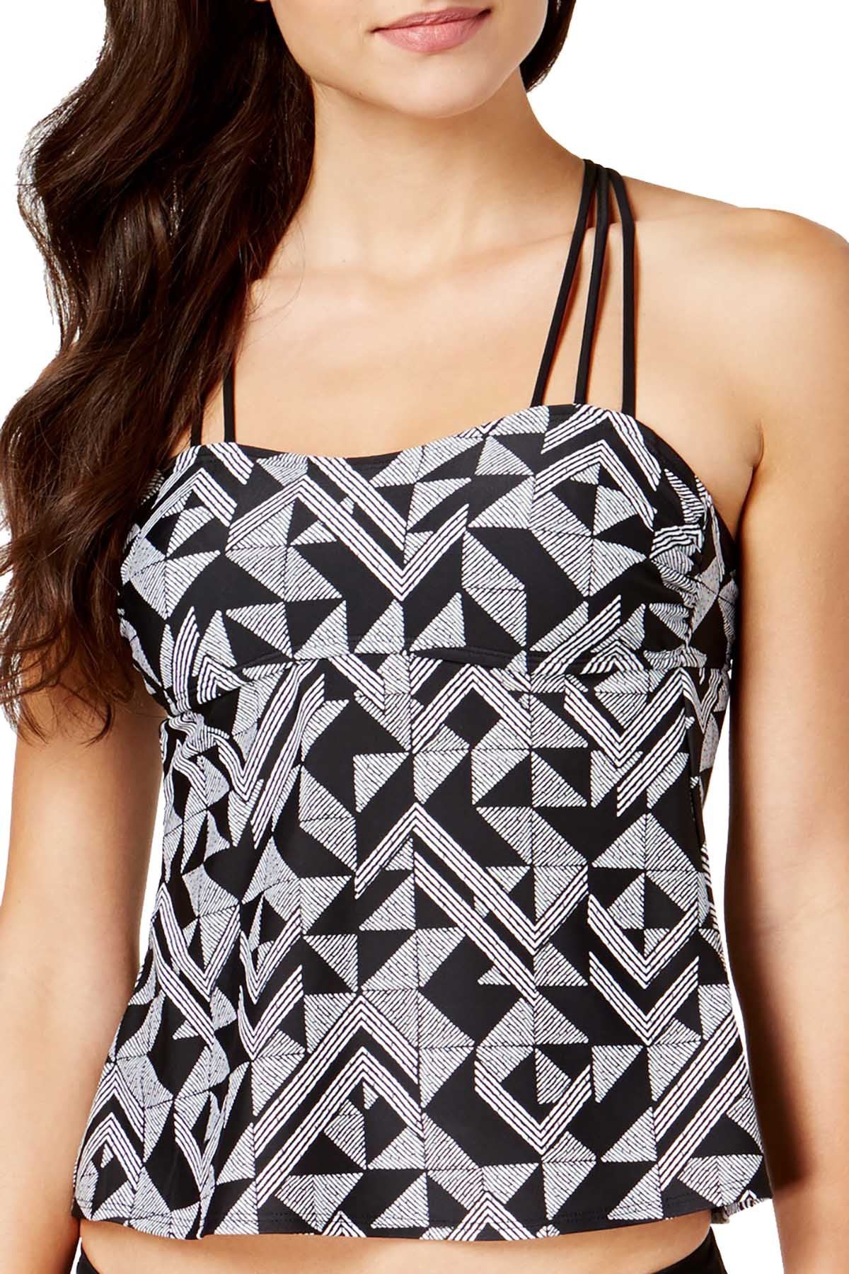 Hula Honey Maze Muse Halter Tankini Top in Black/White