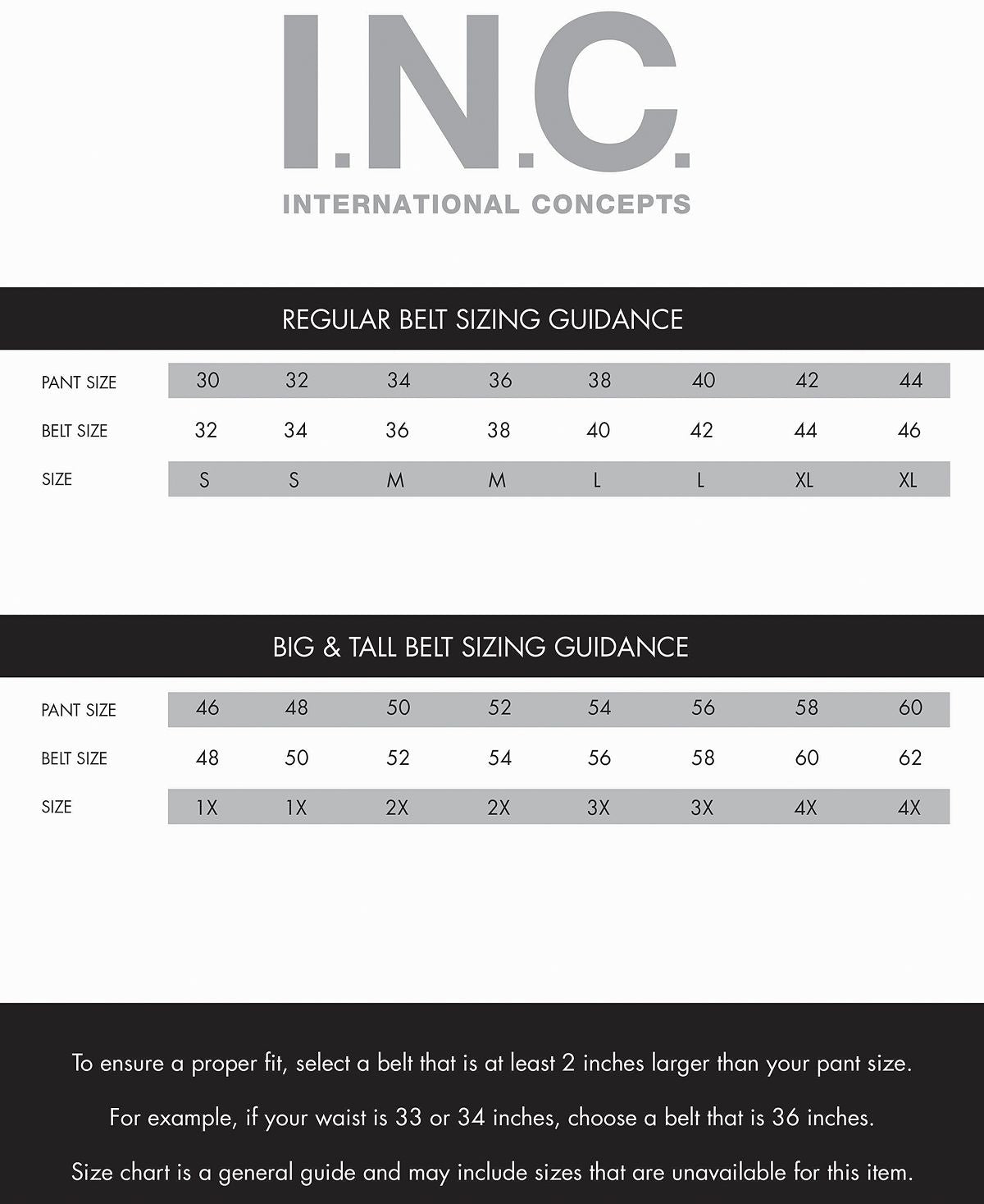 A perfect complement to your casual look this belt featuring metal double loop strap keepers and a rugged roller bar buckle by INC International Concepts will elevate your everyday style.Approx. length: 39-1/2"; Approx. width: 1-3/16" Holes included along entire strap length for a fully adjustable fit; Matte black single-prong roller buckle and hardware; double metal strap keepers; blunt tip end; For best fit order a size 2" larger than your waist size. Alpha size info: Small (30"- 32") Medium (34"- 36") Large (38"- 40") Extra Large (42"- 44") ; Polyurethane/bonded leather; Spot clean; Imported