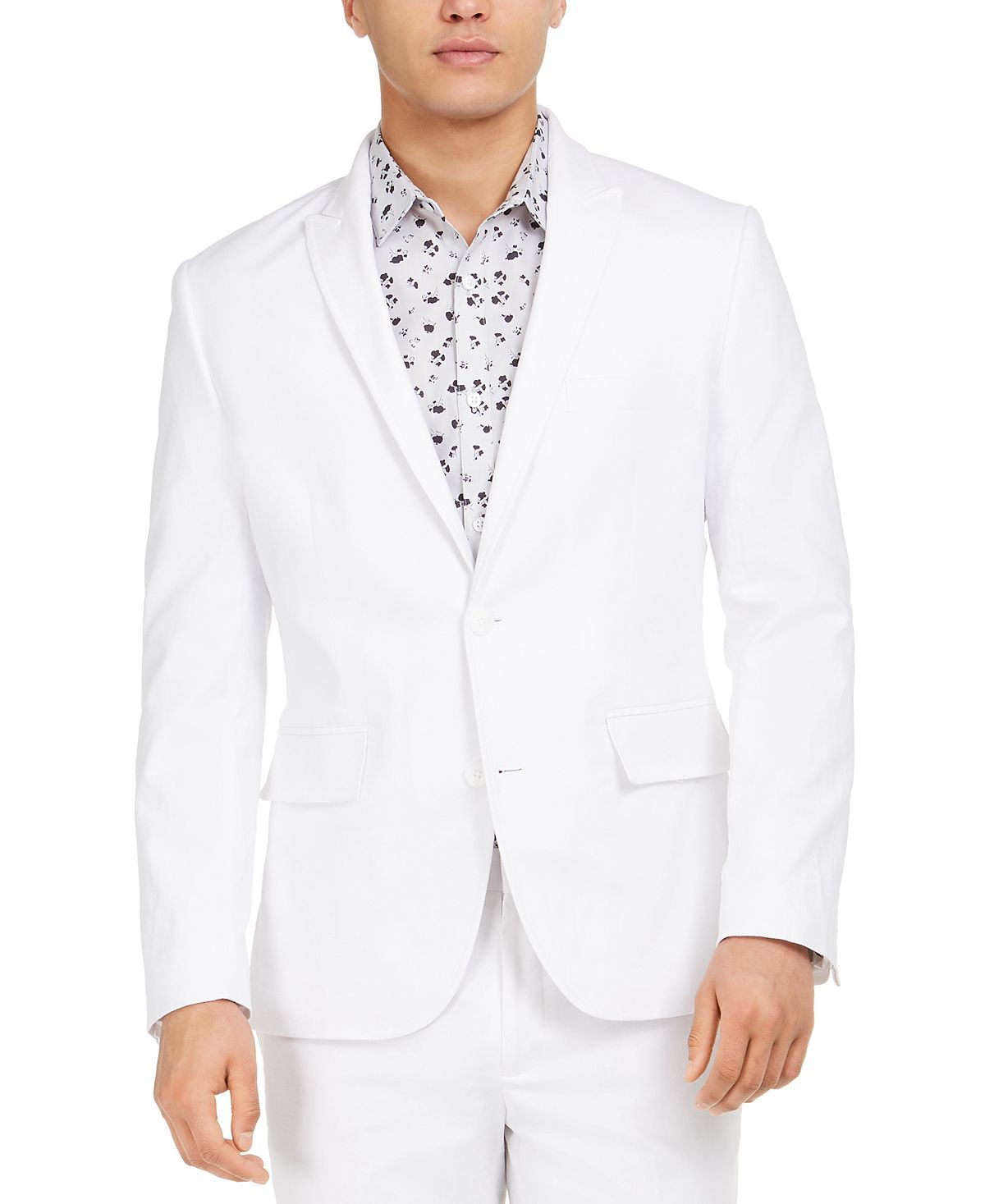 Capture the essence of warm-weather style with this slim-fit linen blazer from INC International Conceptsa classic carefree look that pairs up seamlessly with matching Jasper linen pants. Slim fit Notched lapels; Two-button closure Welt pocket at chest Flap pockets Linen/rayon/spandex; Dry clean; Imported