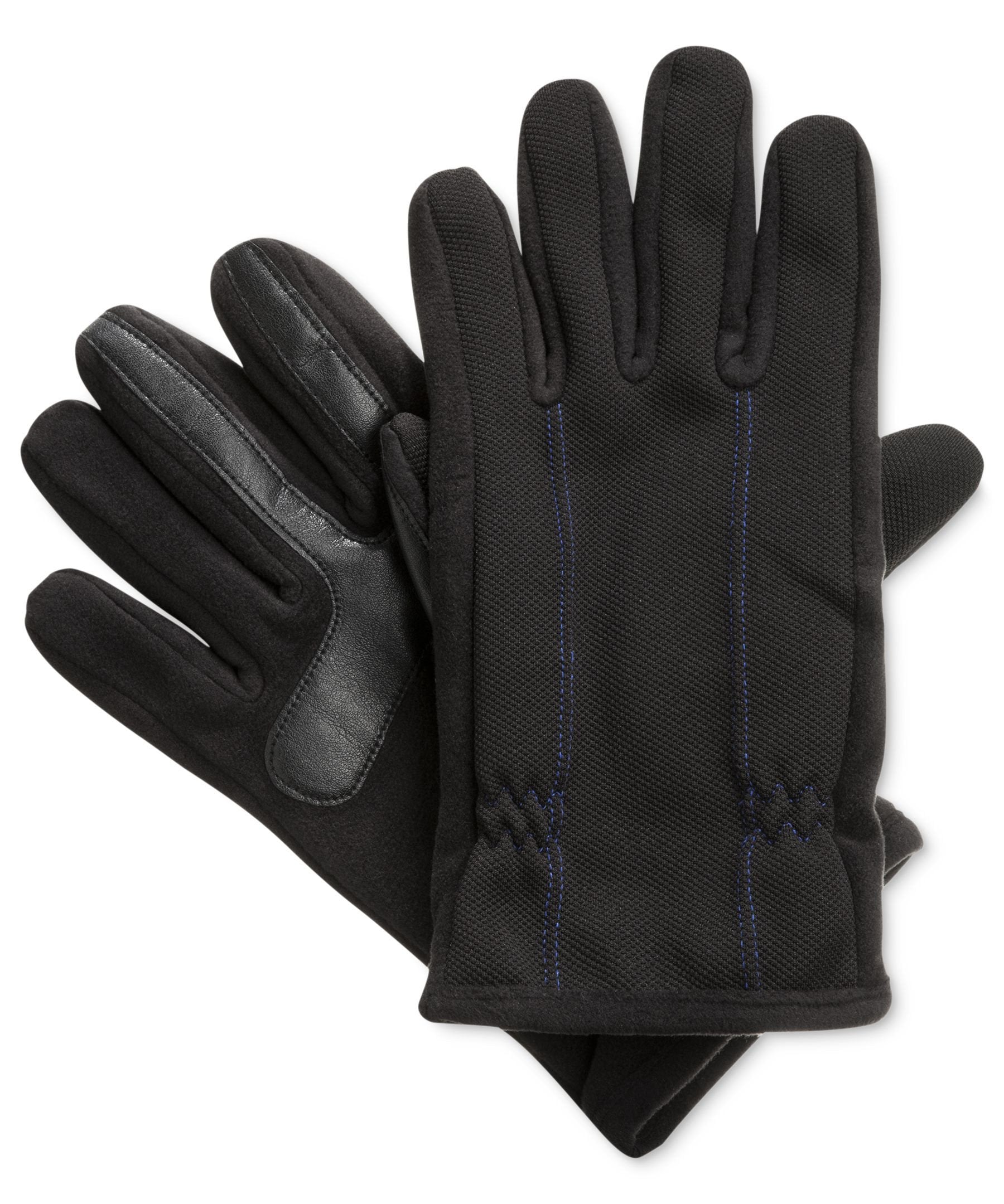 Touchscreen compatible; * The unique design allows for pinpoint accuracy; * Non-slip palm improves grip for secure handling of devices; * Isotoner's signature stretch materials ensure superior fit and flexibility; * THERMAflex lining is thicker on the back of the hand for increased warmth and less restrictive on the palm for superior flexibility; * Hand wash; * Imported
