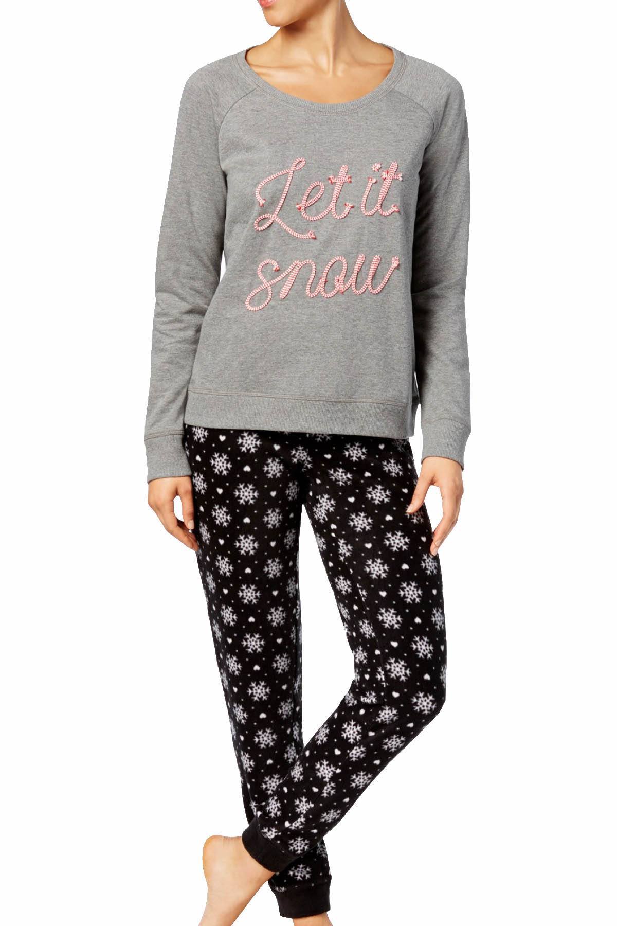 A cute embellished graphic message adds a fun touch to a classic, cozy pullover silhouette with this pajama top from Jenni by Jennifer Moore.
