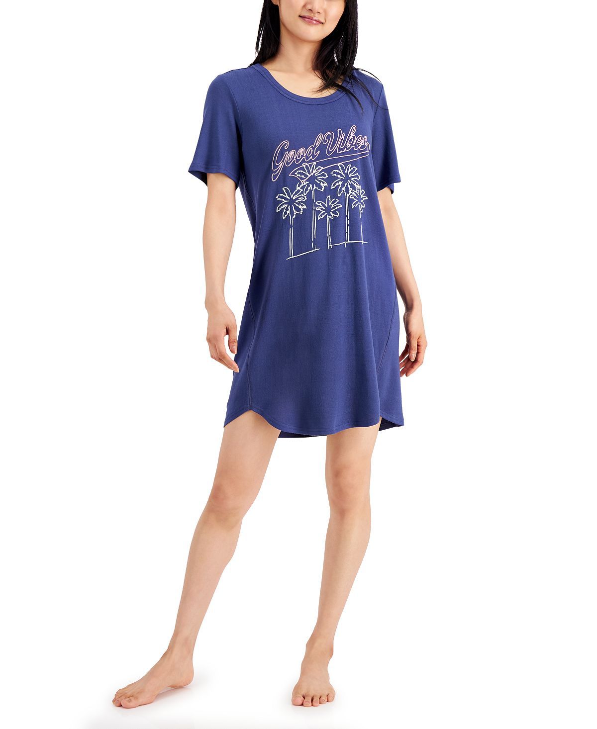 Styled with a charming print and a touch of stretch this sleep shirt from Jenni will keep you comfy all night.Length: Hits at mid-thigh; Special Features: Curved hem; Closure: Pullover styling; Sleeve Length: Short sleeves; Polyester/spandex; Machine washable; Imported