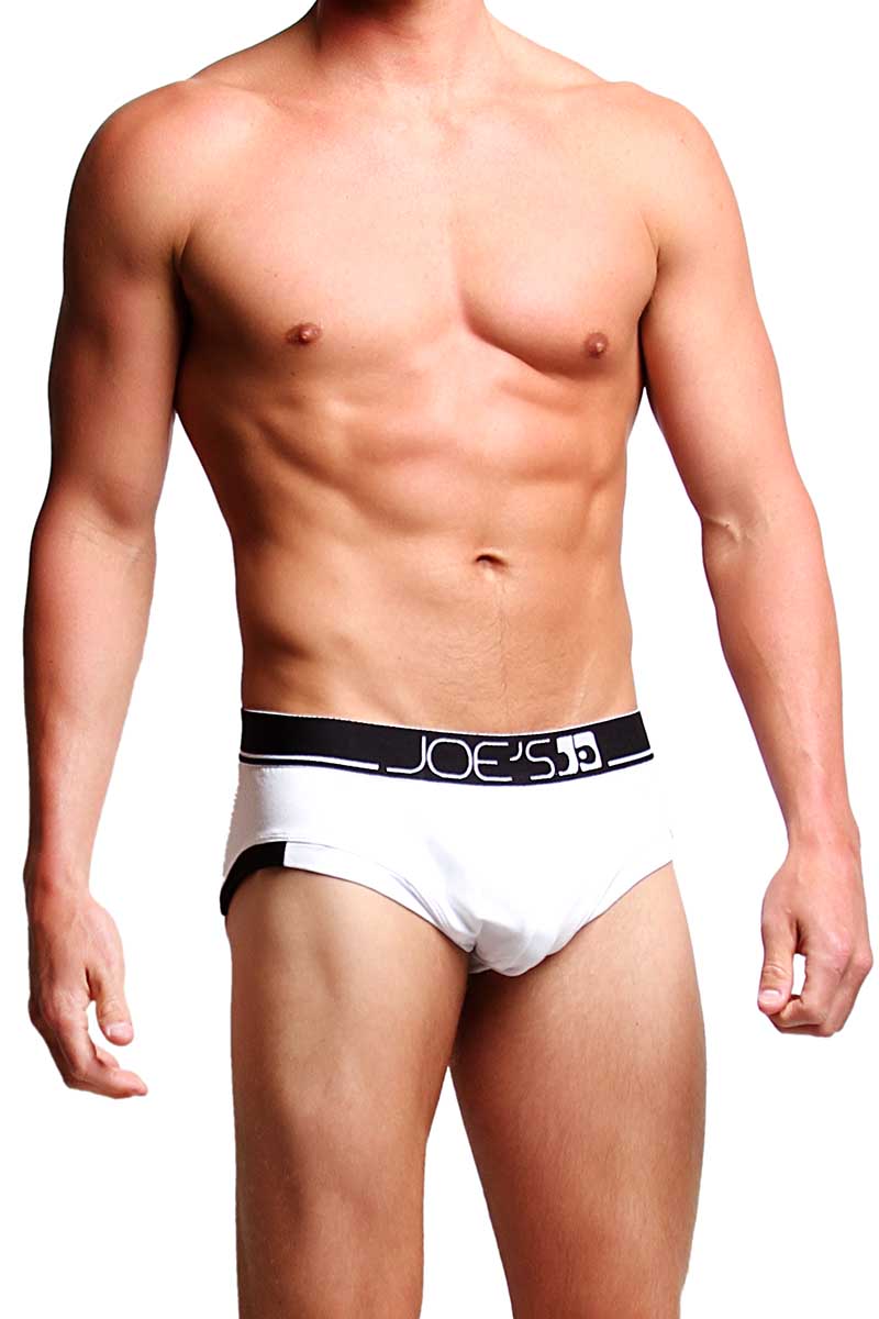 - Details: Mens brief; Low-rise waist; White body; White and black leg trim; 4-way stretch comfort; Tagless, No more annoying tags!