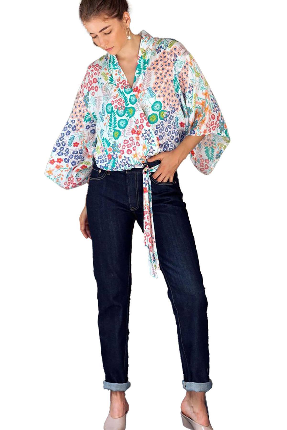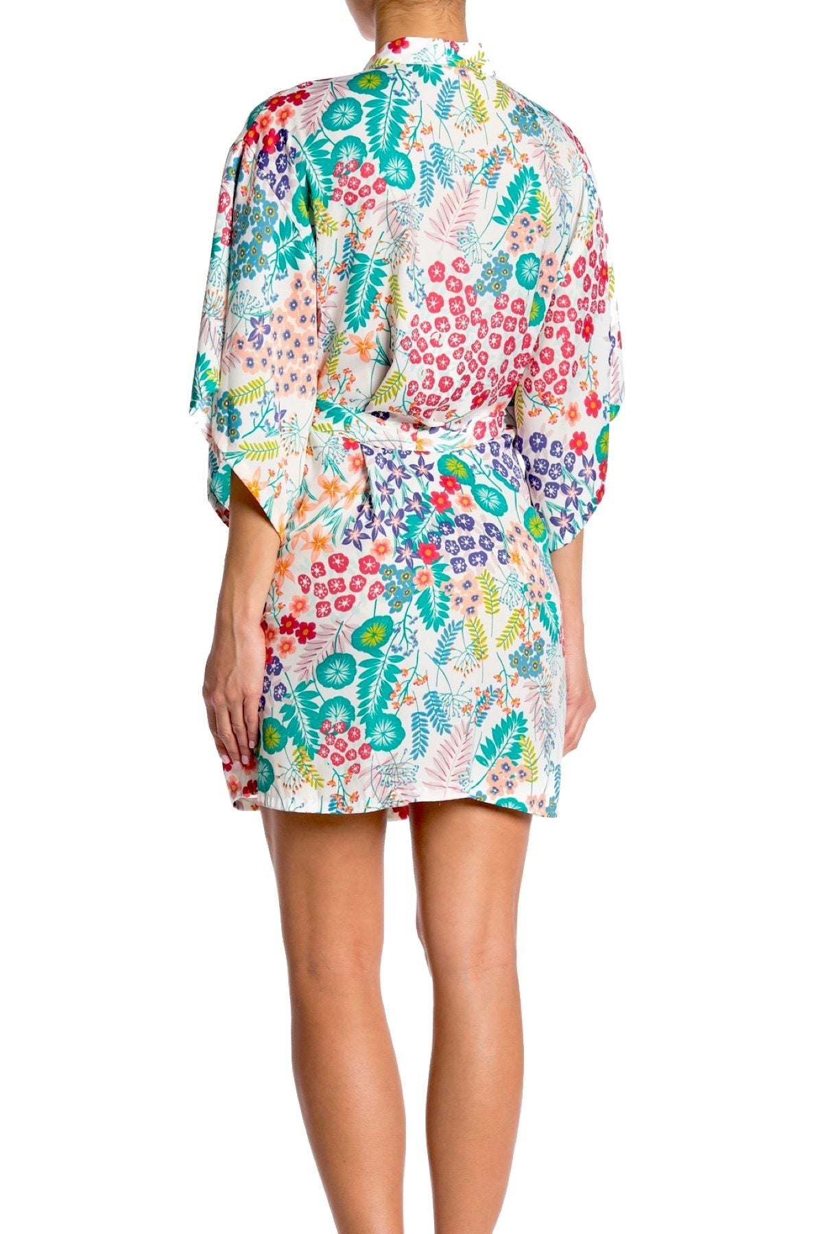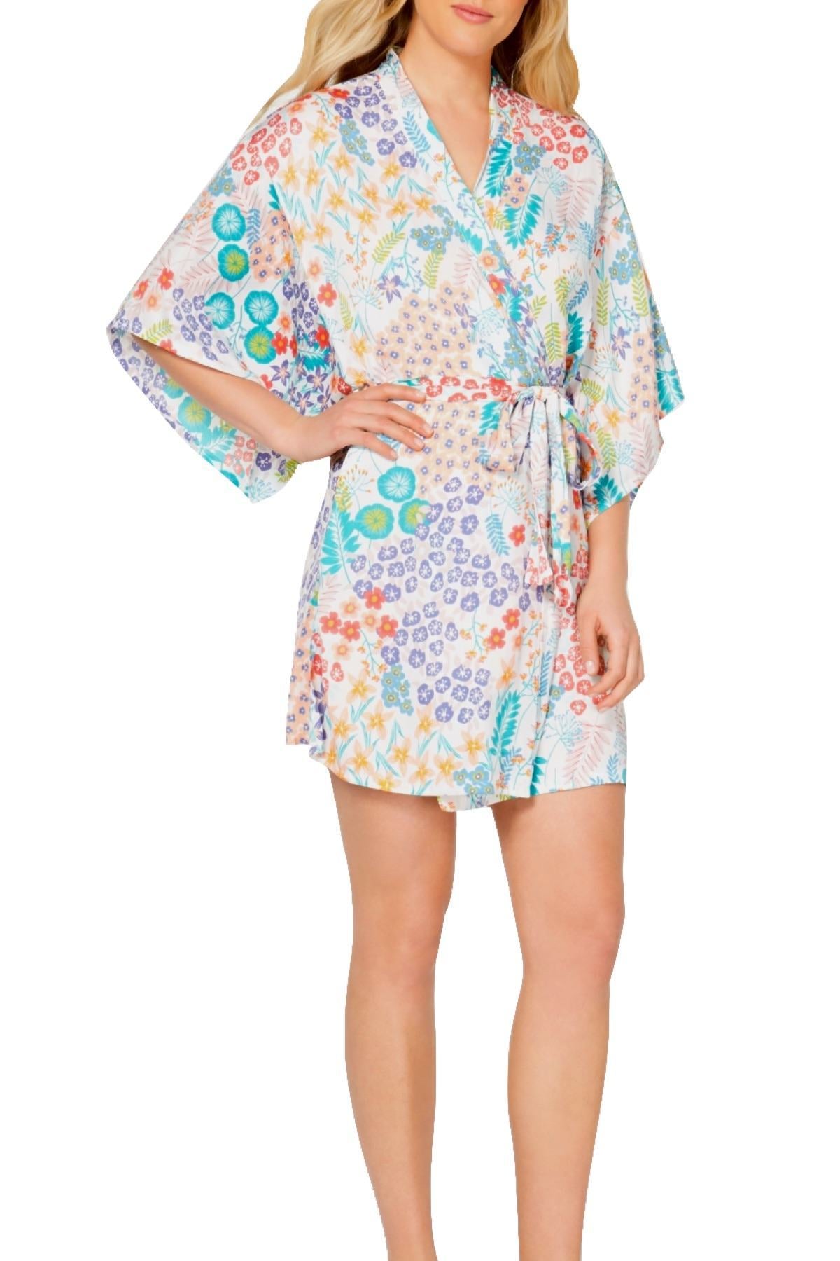 Josie by Natori Lotus Bouquet Kimono Wrap Robe in White/Multi