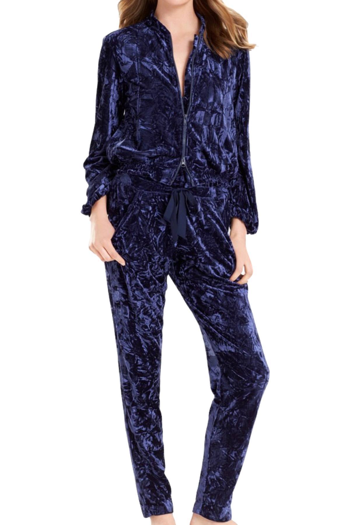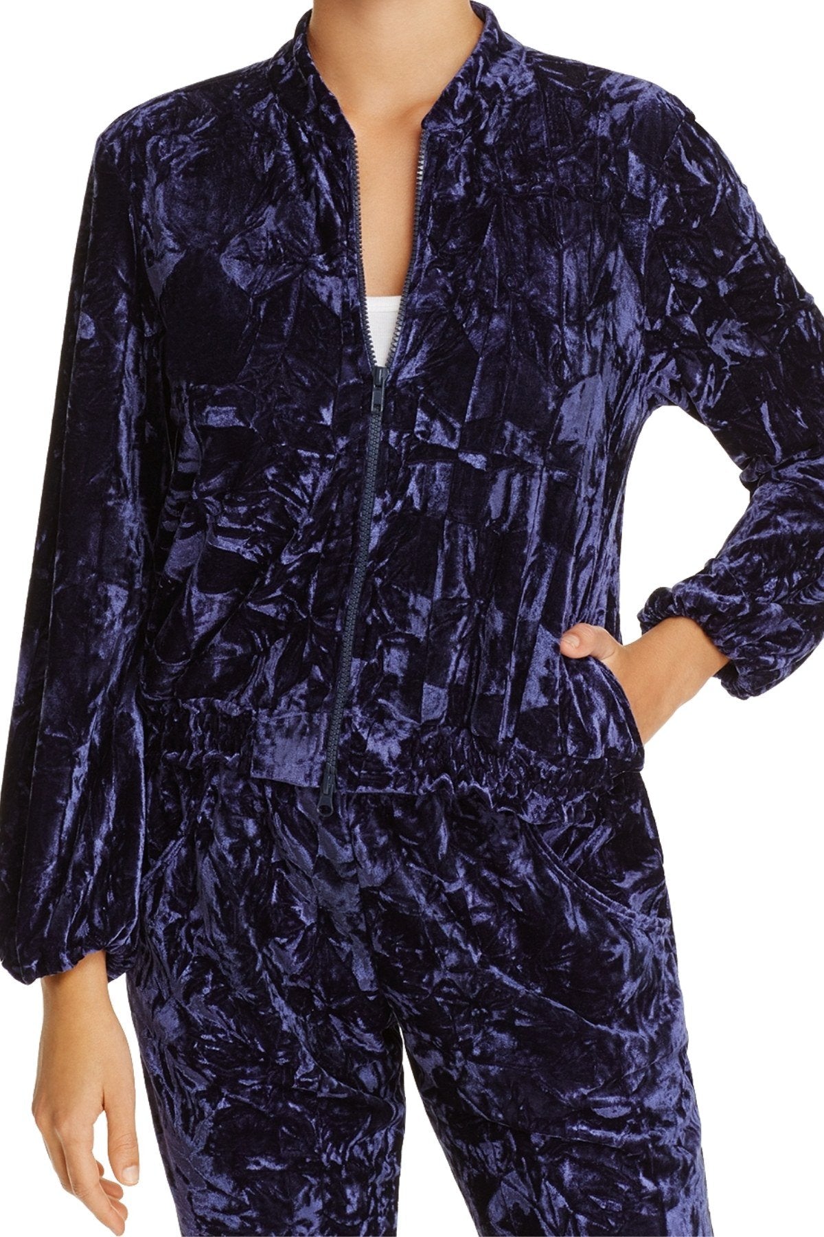 Josie by Natori Velvet Crush Zip Bomber Jacket in Midnight