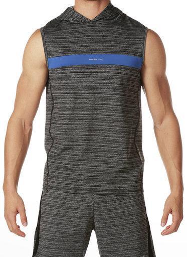 COLOR BLOCK JERSEY MUSCLE HOODY WITH REFLECTIVE LOGO AT CONTRAST CENTER CHEST STRIPE