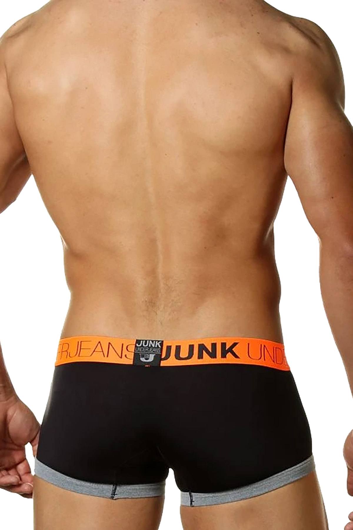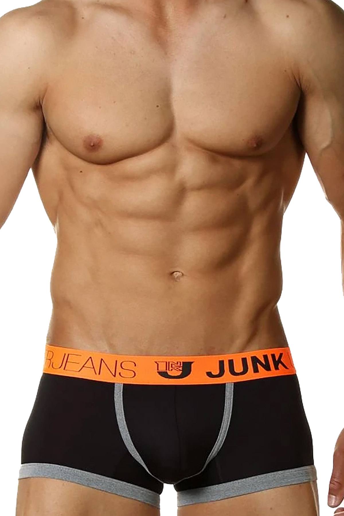 - Black jersey trunk with grey jersey contrast trim and a brightly colored waistband.