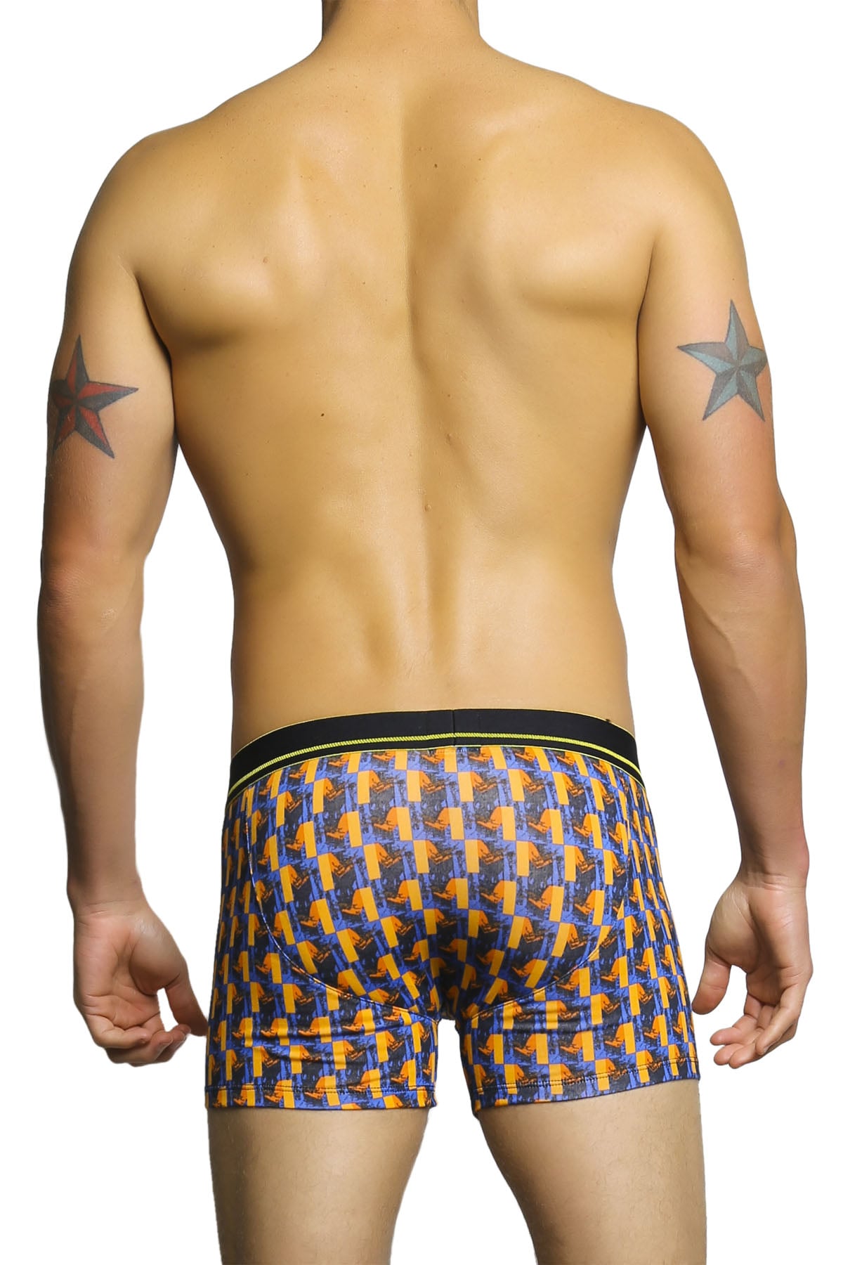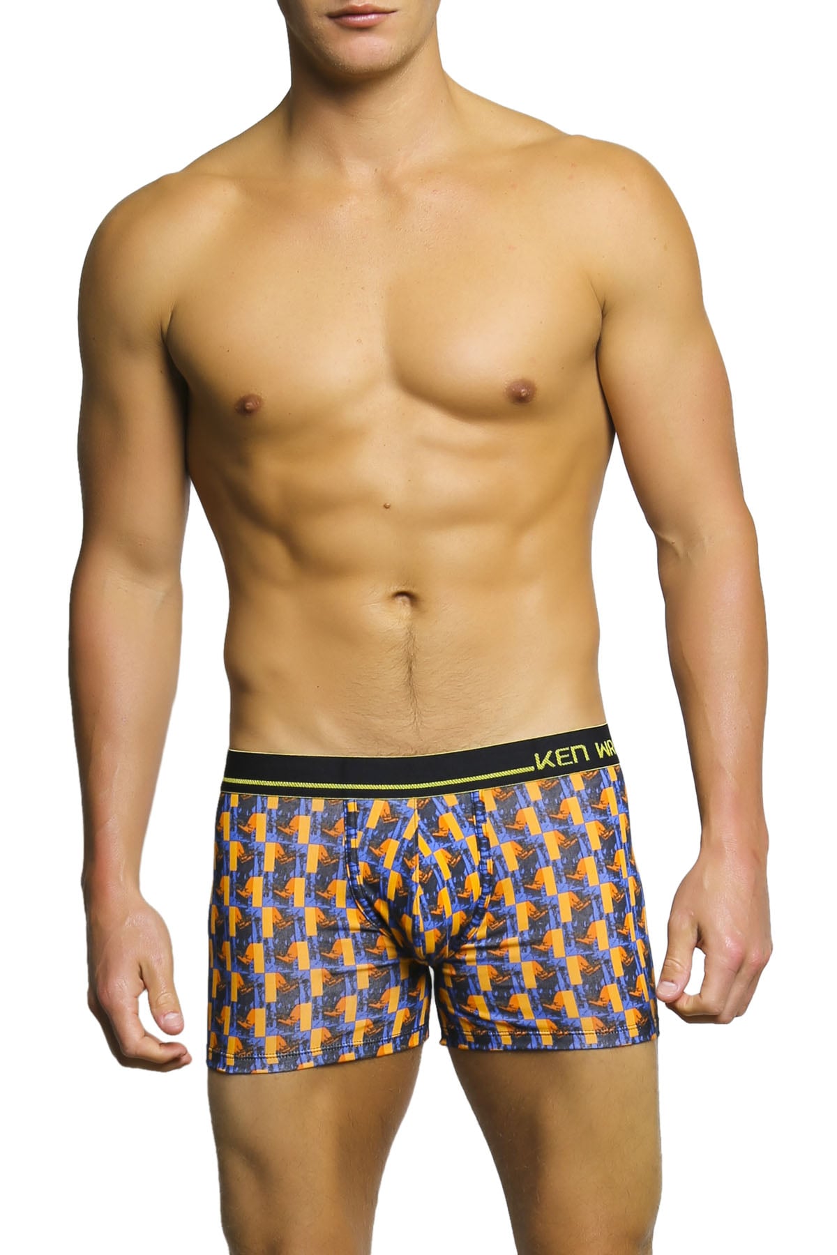 - Features: Orange "Strike Zone" pattern; Printed cotton body; Slim fit boxer brief; Mid-rise waist; Stretch comfort.