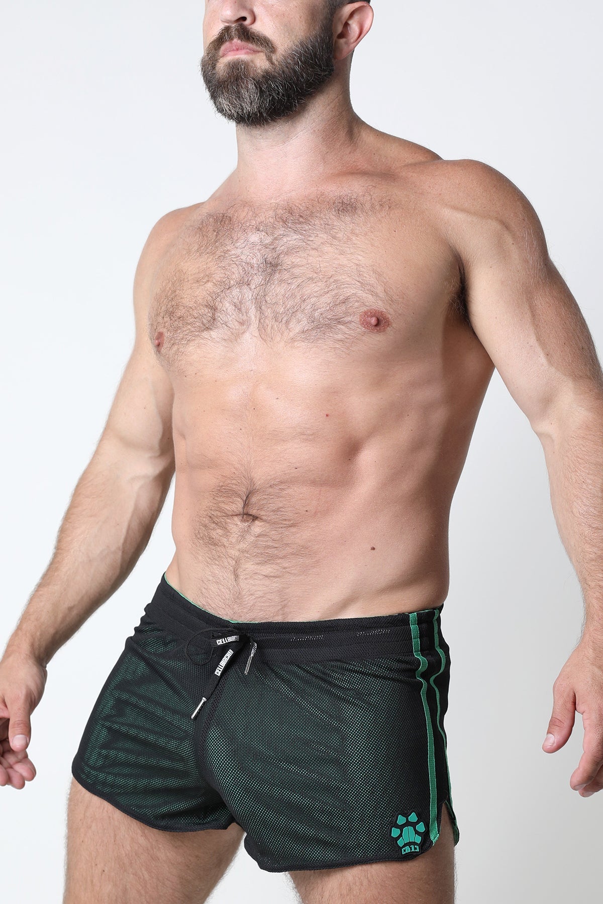 The all new Kennel Club Bandit Reversible Short shows off your legs, hugs your ass, and is completely reversible. Flip the color side inside out and you have a black mesh short you can wear to the gym, the club, the bedroom or anywhere. No matter which way you choose to wear it, the drawstring keeps it secure against your waist and each side has a back pocket to store your necessities. WOOF! Now available in XXL! (If you have larger than normal legs and butt, please order one size up!)