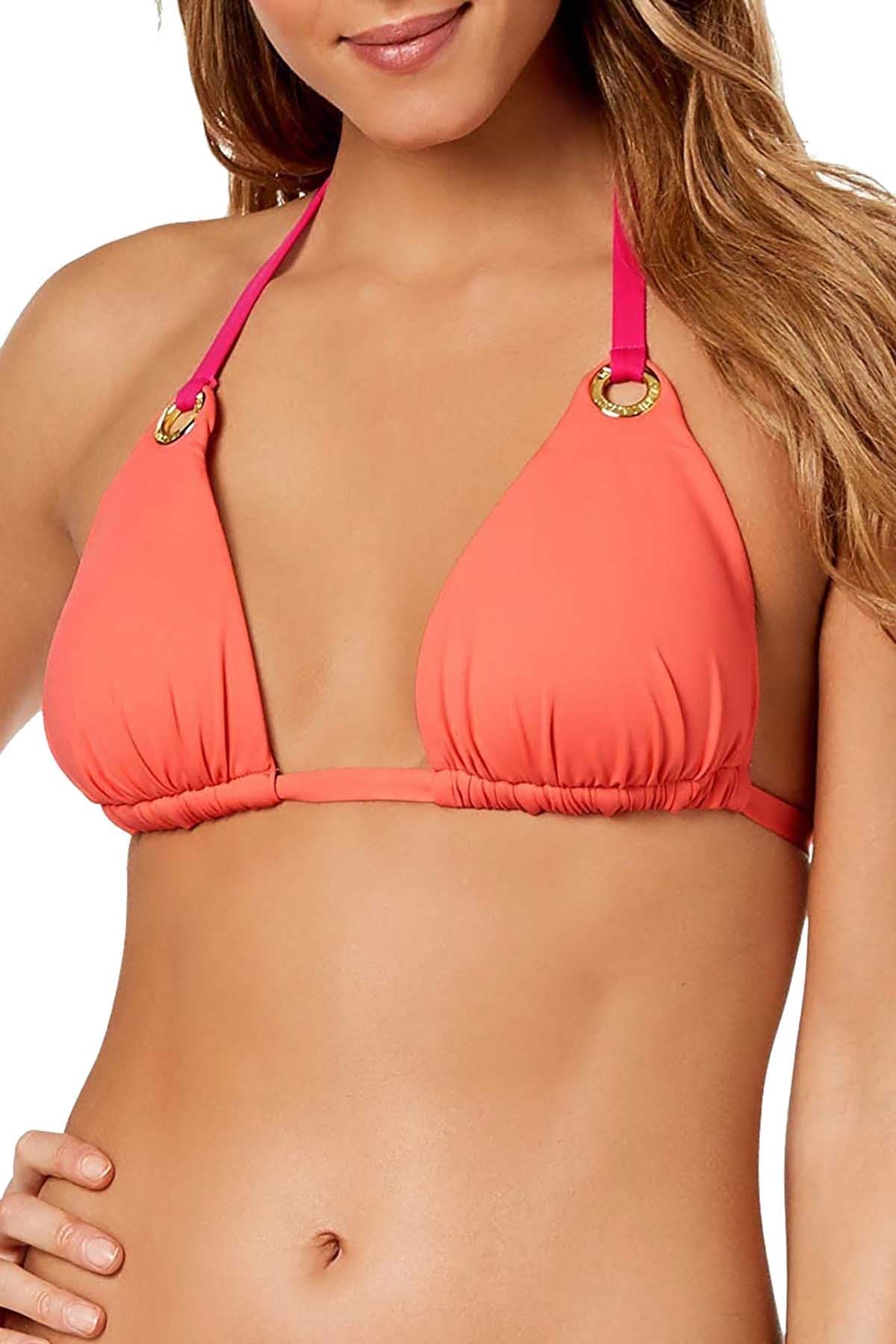 - Colorblocked halter straps connect to gold-tone logo grommets in this haute triangle bikini top from Lauren Ralph Lauren.
