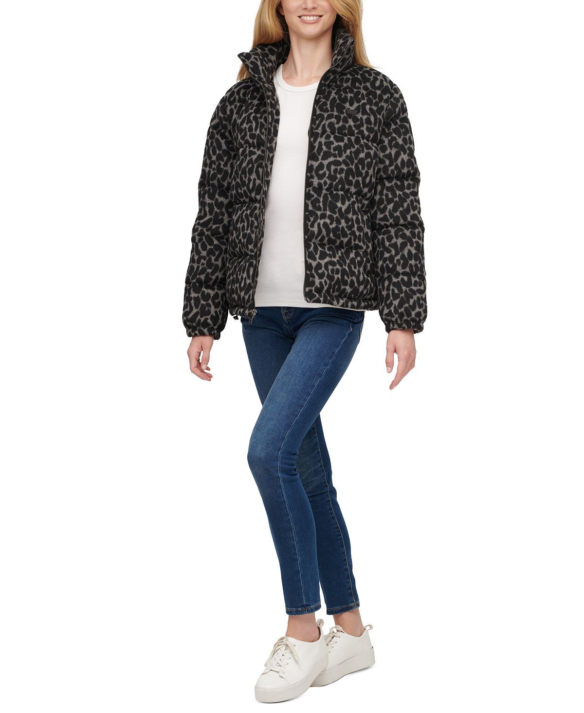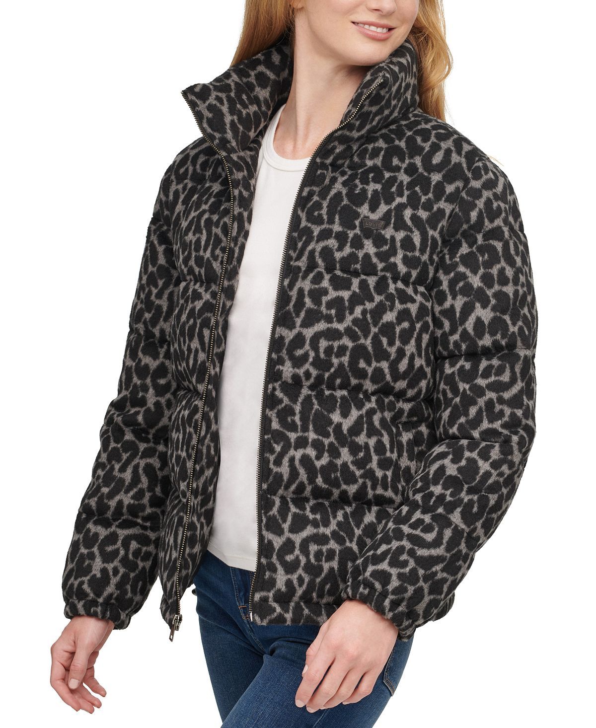 Levi's animal-print Cropped Puffer Jacket Charcoal Leopard