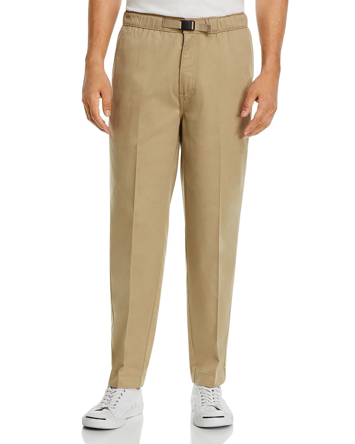 Fits true to size order your normal size; Designed for a slim fit; Model measurements: 6'2" height 38" chest 30" waist 34" inseam wearing a size medium; Zip fly with button closure and attached buckle belt; Two side slip pockets two back welt button pockets; 70% cotton/27% polyester/3% elastane; Machine wash or dry clean; Imported