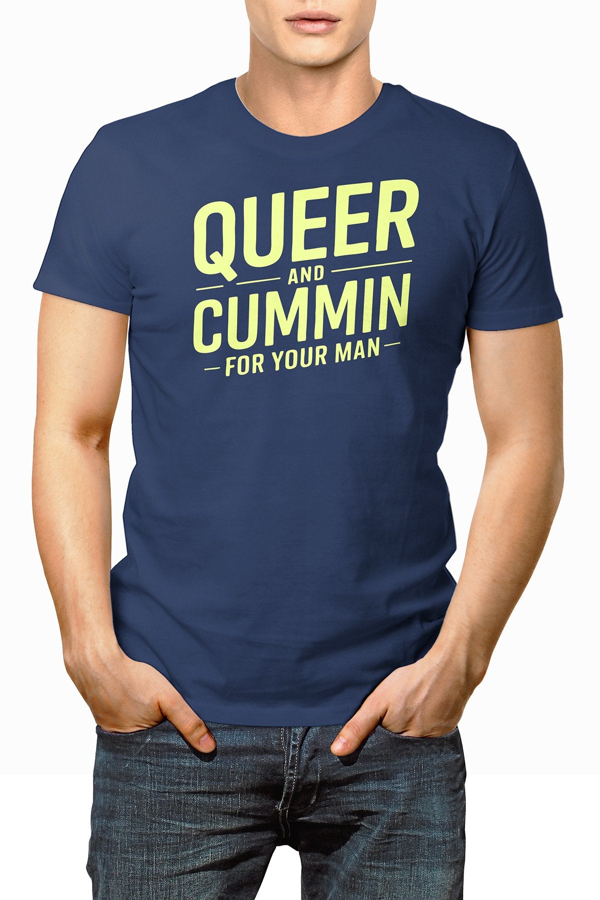 This isn’t just a shirt, it’s a fucking confession. Lowtee: Queer and Cummin’ for Your Man puts your dirty little secret front and center. With bold neon yellow letters on navy, you're not just wearing a tee—you’re announcing to the world: you're queer, and cumming for their man.