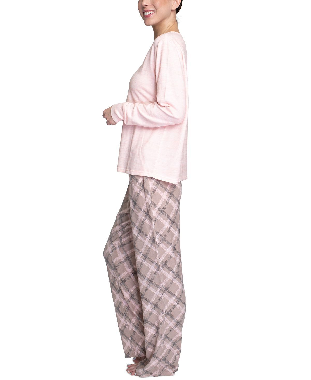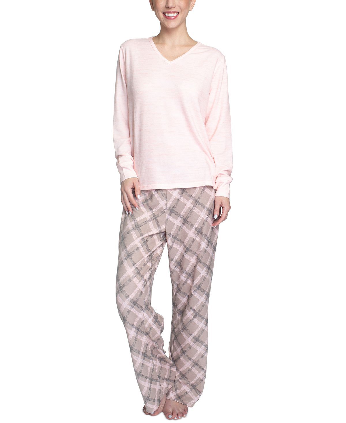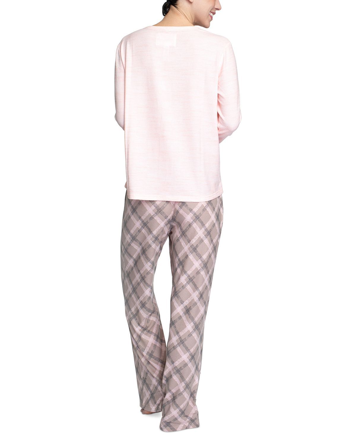 Muk Luks Butter-knit V-neck & Flare-leg Pants Lounge Set Pink Plaid