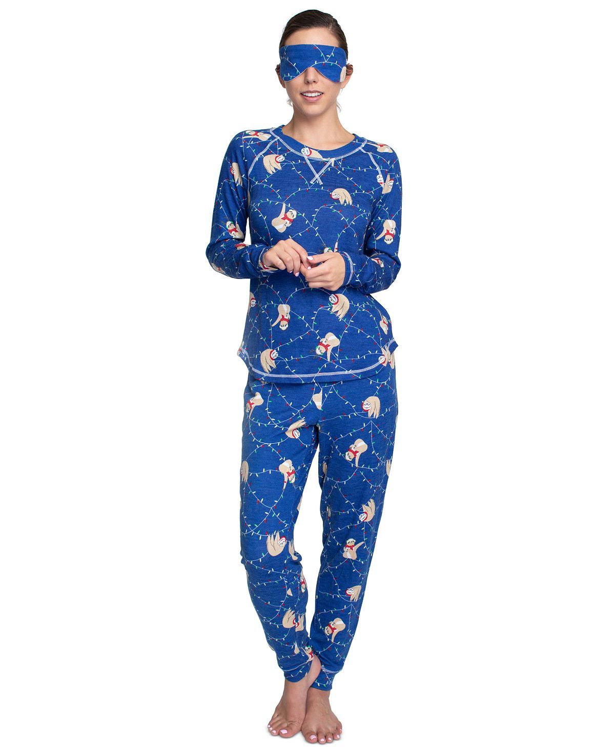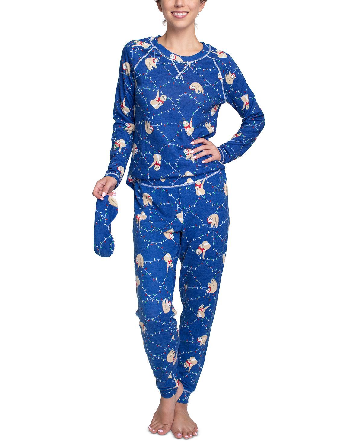 Muk Luks Plus Printed Hacci Pajamas & Sleep Mask Set Sloths