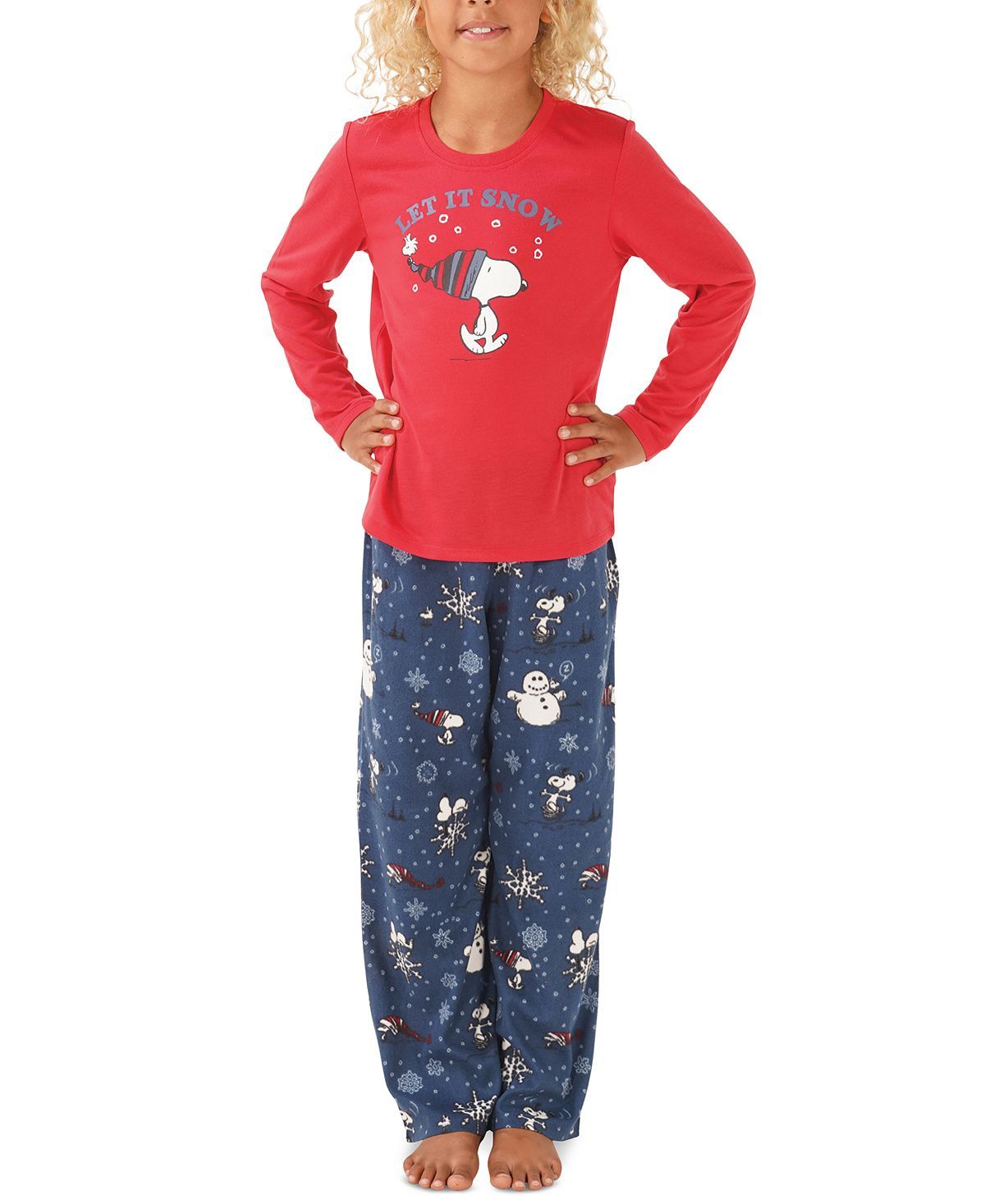Munki Munki Matching Little & Big Kid Snoopy Let It Snow Family Pajama Set Blue