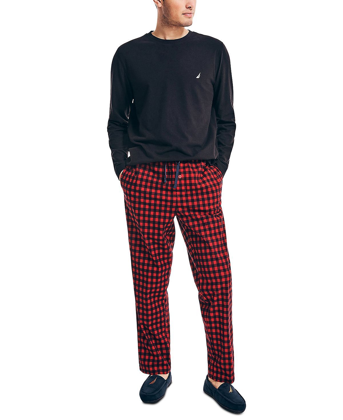 Hit the snooze button and rest easy while wearing these classic-fit pajamas from Nautica made from soft sustainably crafted cotton-fleece to keep you comfortable all night long. Classic fit; Elastic waistband with drawstring; Button-fly closure; J-class logo at hip; Side welt pockets; Polyester (30% recycled); Machine washable; Imported