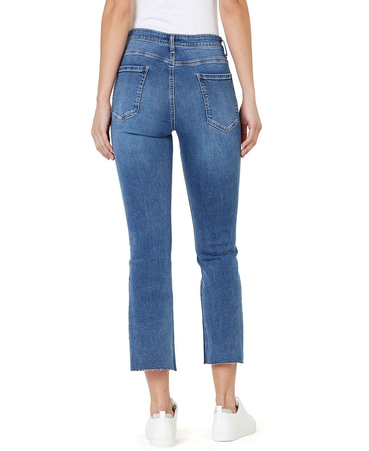 Keep your denim collection on point with these cropped kick-flare jeans from Numero fashioned with a flattering high rise and raw-edge hems.Approx. model height is 5'10" and she is wearing a size 27; Approx. inseam: 27"; Approx. rise: 10-1/2"; Zipper and button closure; belt loops; Raw hem; Cotton/spandex; Machine washable; Imported