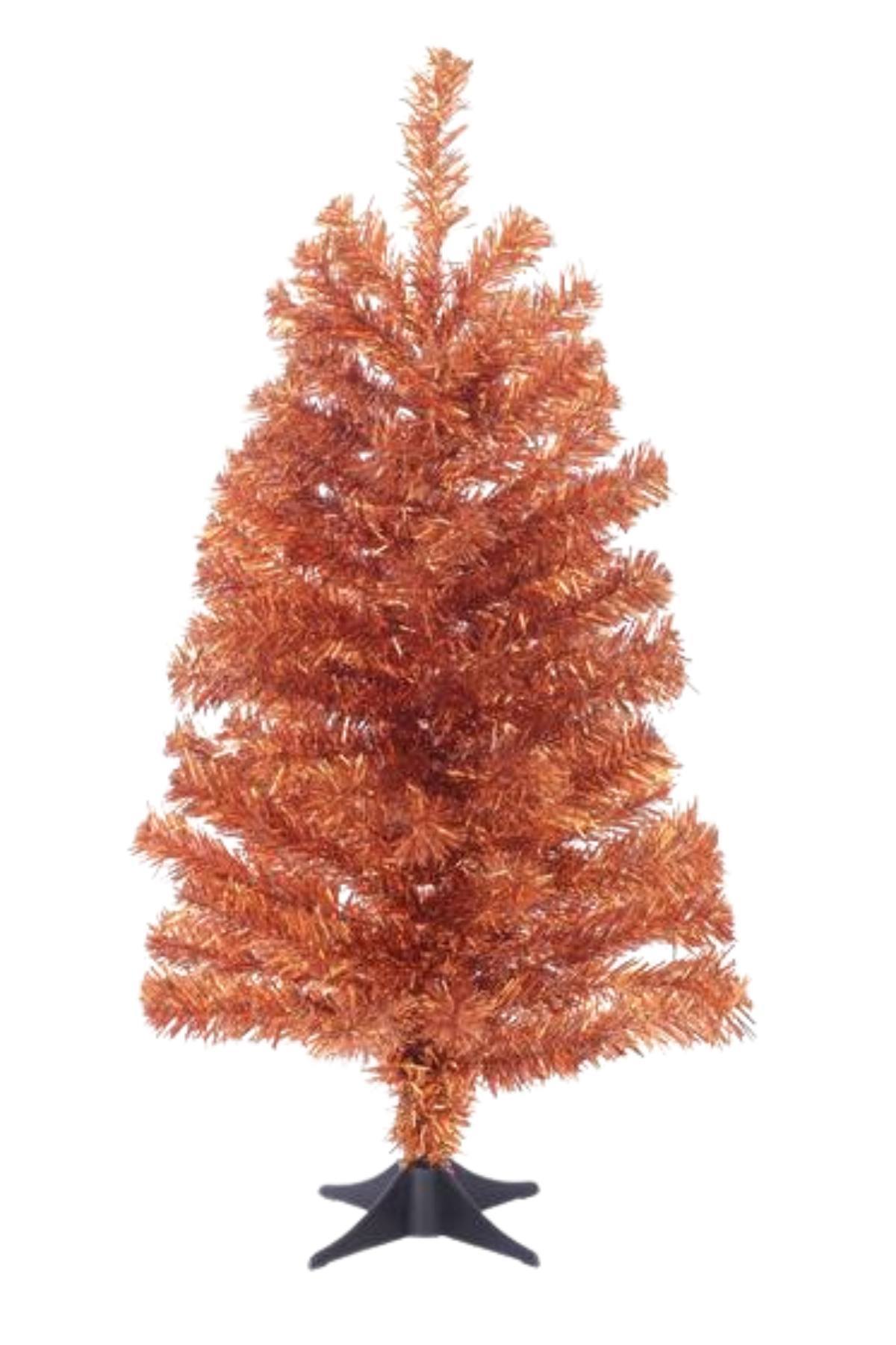2ft. Orange Tinsel Tree. Place it in your entryway near a mantle or any where in your home to enhance your holiday decorative theme. Decorate your home this Halloween with this fun festive tinsel tree. Details: Orange 11'' x 11'' x 24'' (27.94cm x 27.94cm x 60.96cm)
