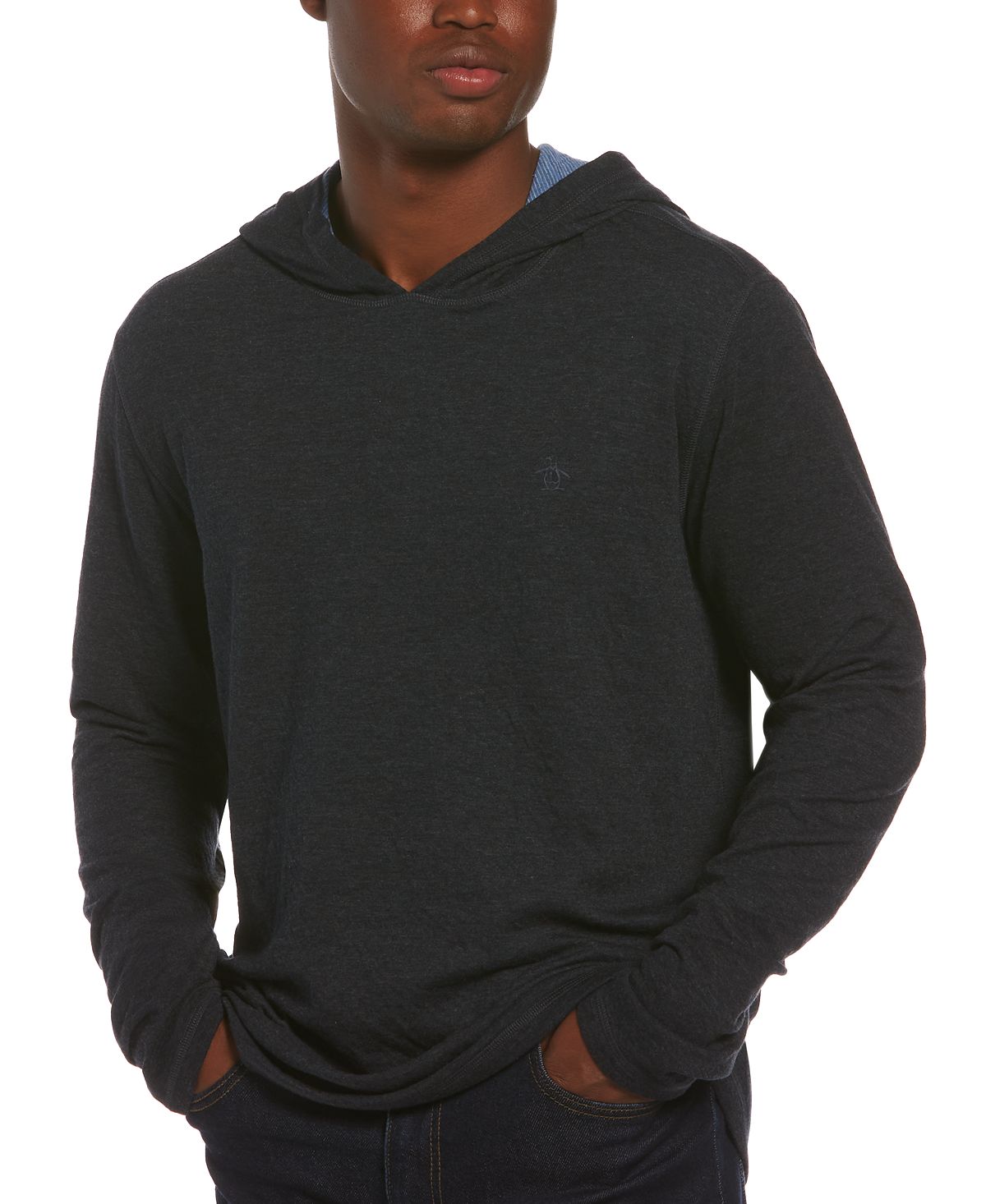 Add a layer of warmth and relaxed casual style to any outfit with this Original Penguin men's hooded pullover sweater.Slim fit Hood; Reversible; logo at left chest; Cotton/polyester; Machine washable; Imported