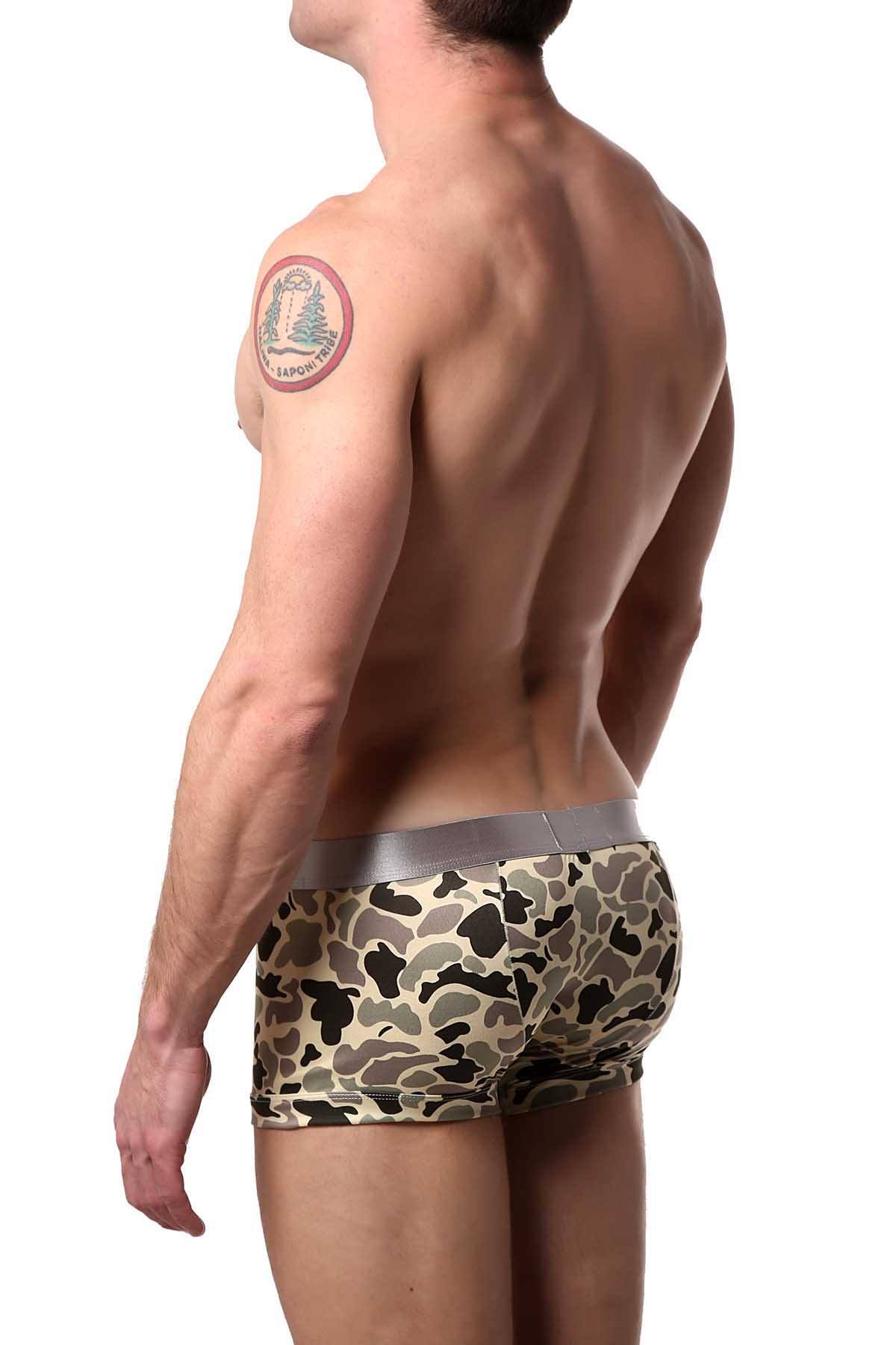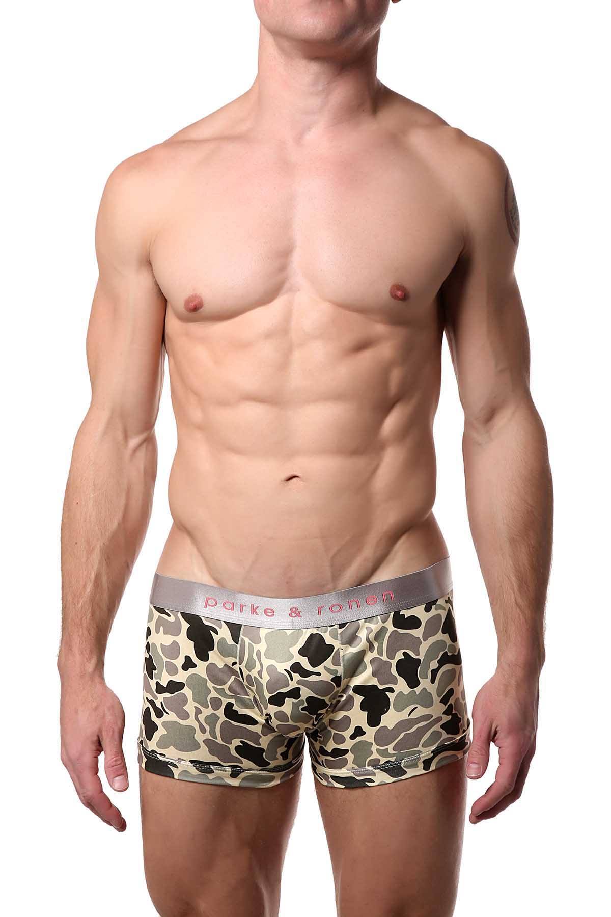 Parke & Ronen Khaki/Green Camo-Printed Low-Rise Trunk