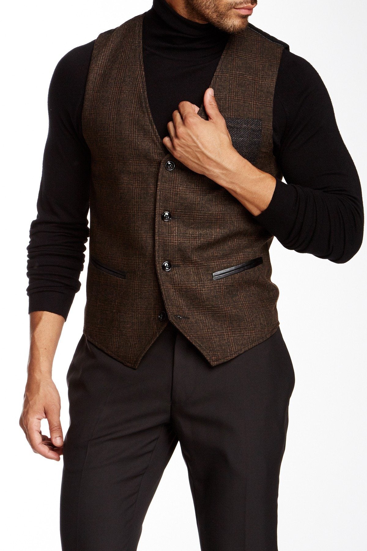People Trend Coffee Vest w/ Faux-Leather Trim