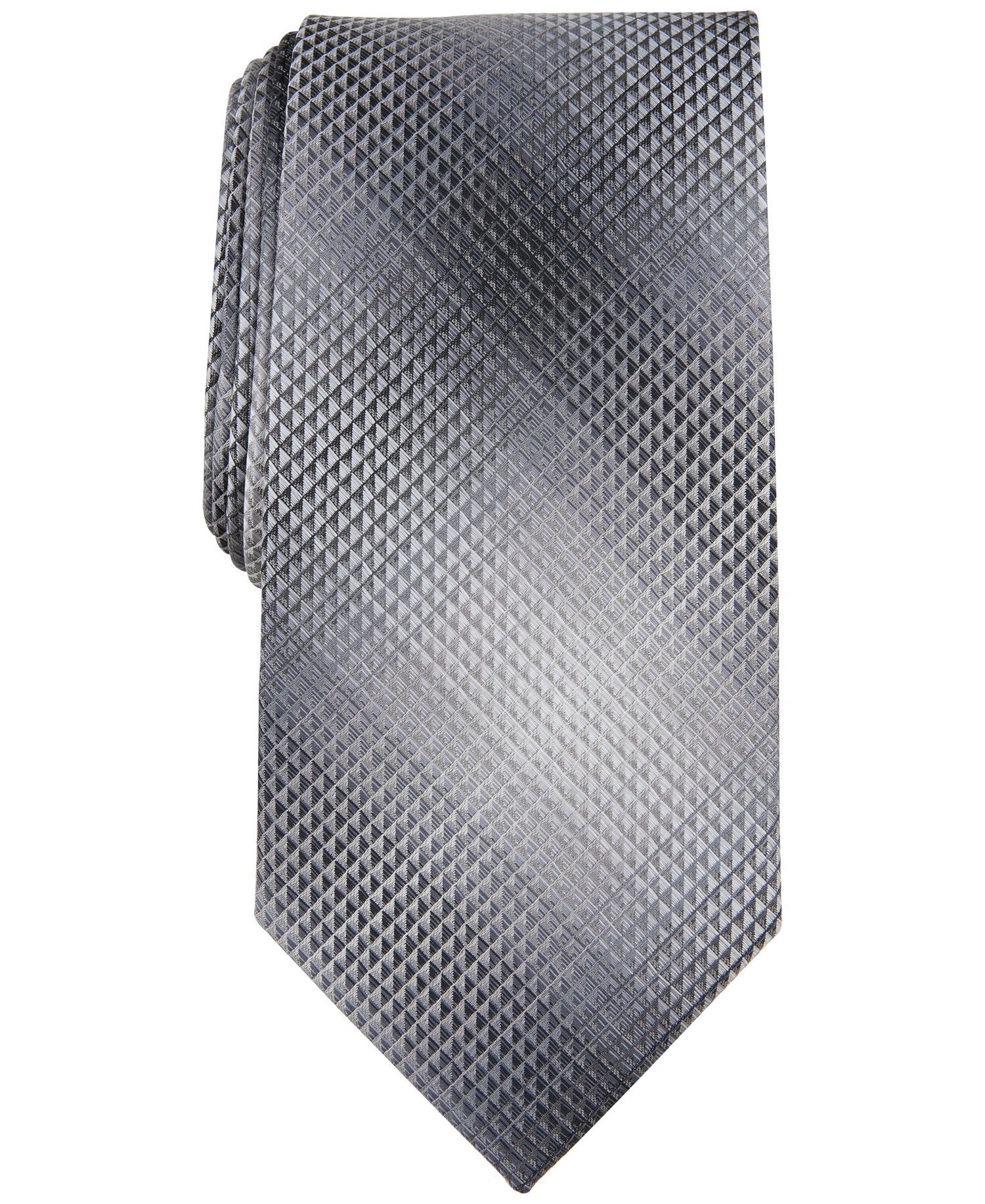 A crisp captivating mini-plaid pattern cascades down the blade of this classic three-inch tie from Perry Ellis creating a look that's stunning up close and from afar.