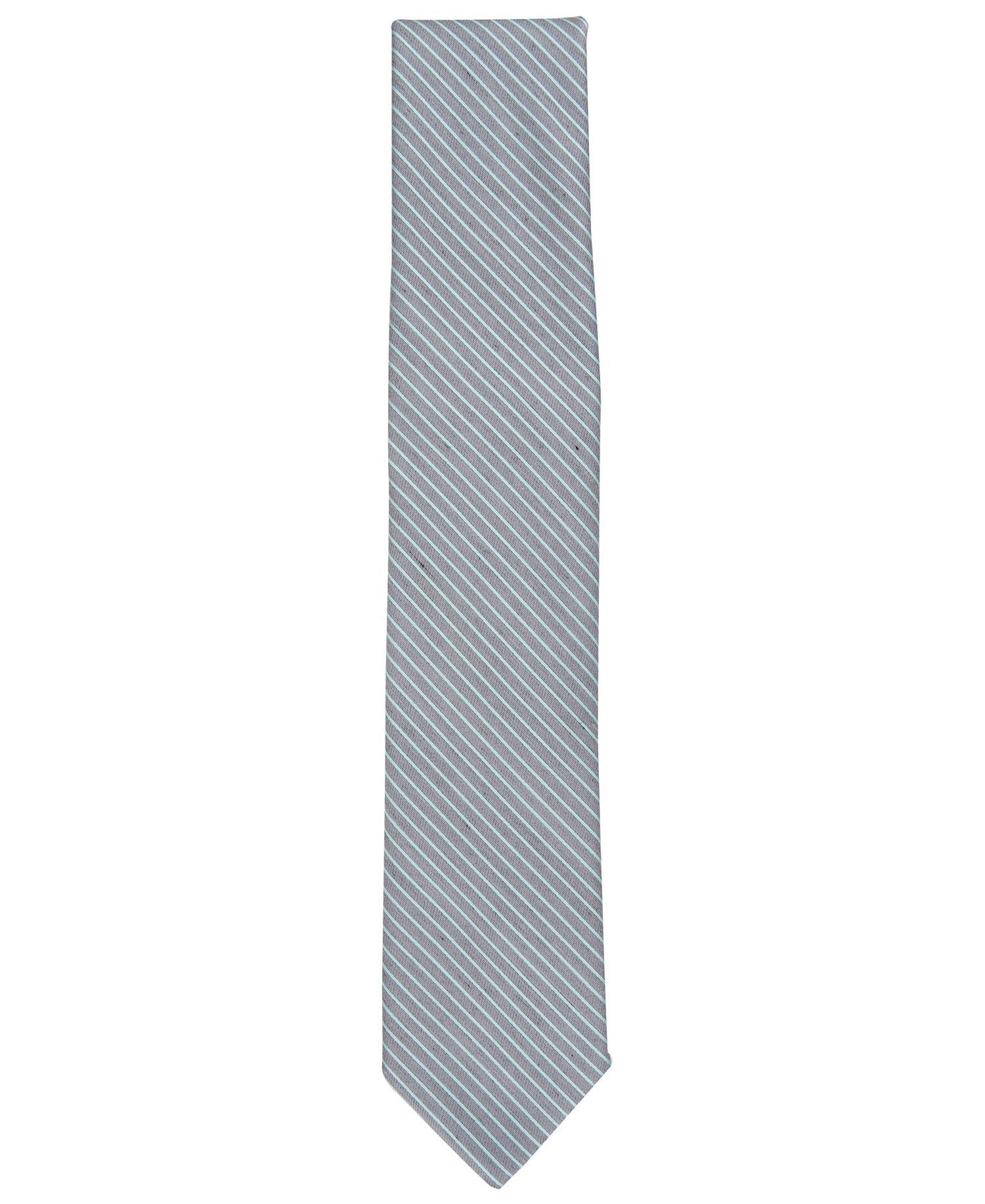 Complete your essential formal ensemble with this classic three-inch tie from Perry Ellis designed with a crisp stripe pattern that drifts down the blade with ease.