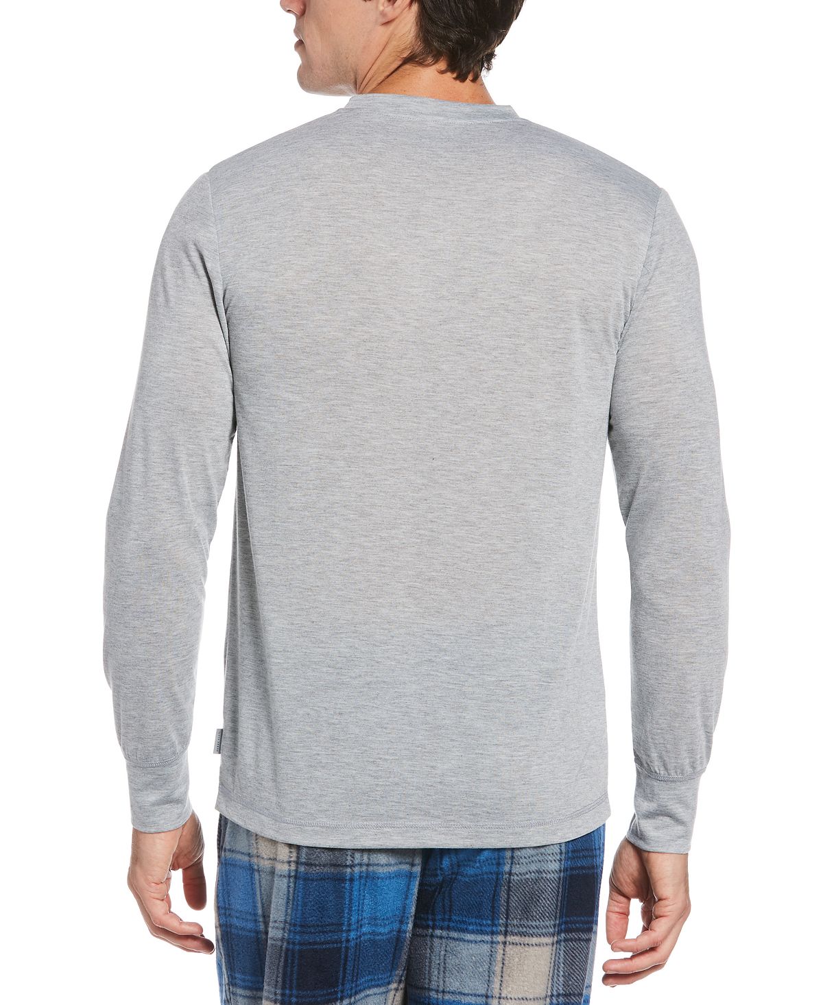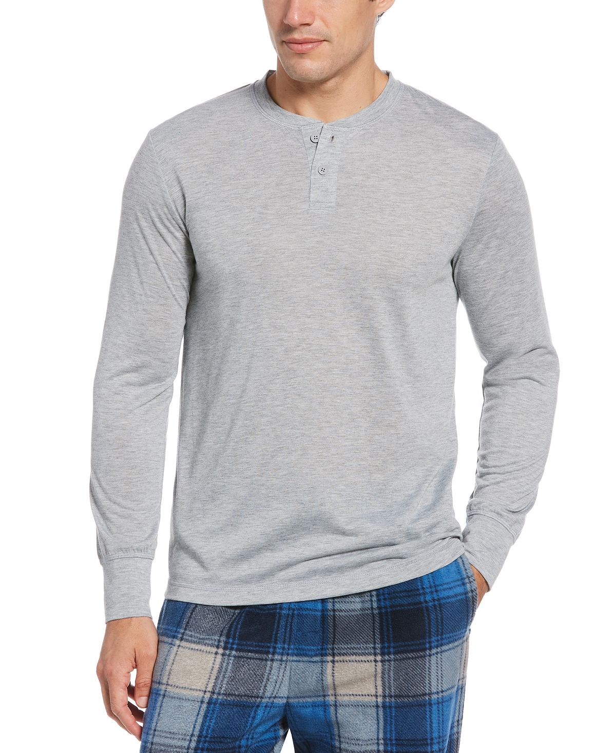 Kick back and relax in the evenings with this casual Henley-style Perry Ellis Portfolio long-sleeve pajama top shirt. Heathered for a subtle two-toned look which adds some extra laidback flair to the design its jersey fabrication is soft and smooth providing comfort for the wearer.Regular fit; Henley neck; two-button placket; Polyester jersey; Machine washable; Imported