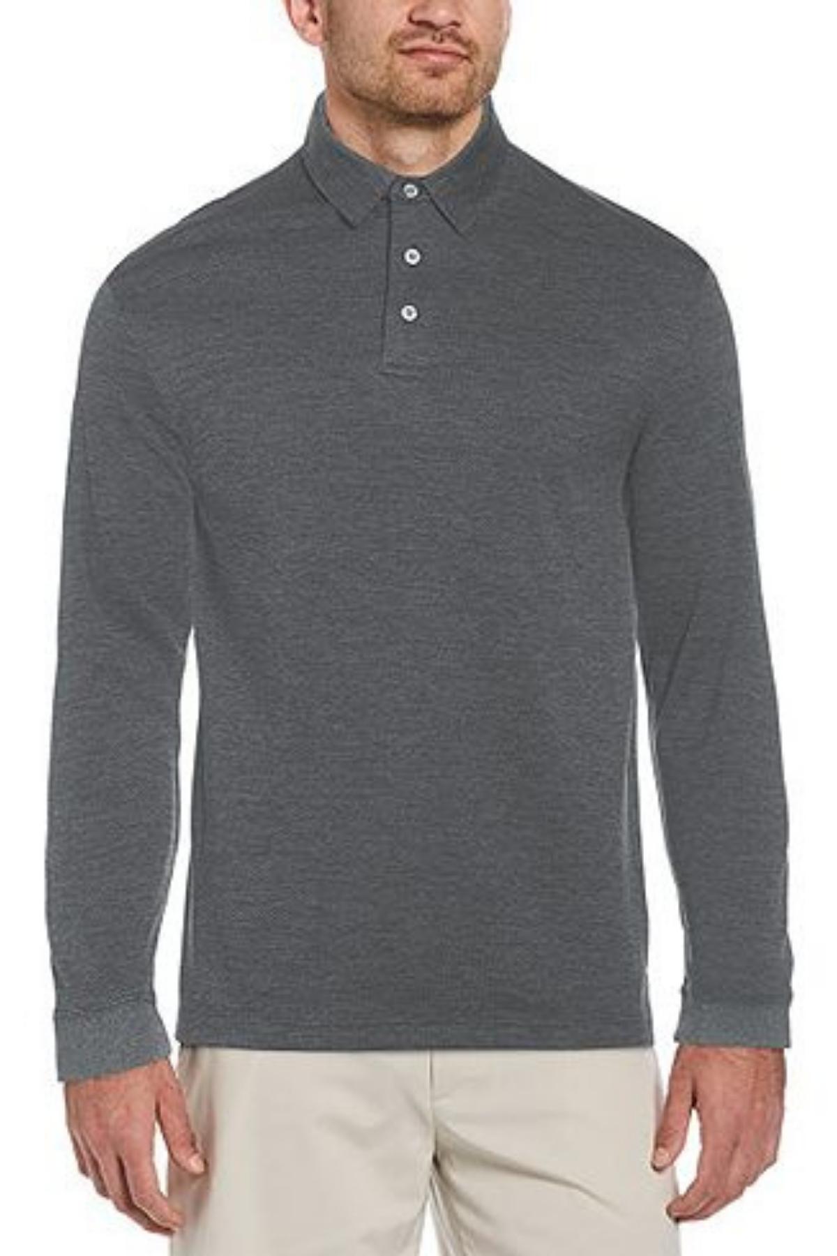 Pga Tour Jacquard Long-sleeve Polo Grey Heath