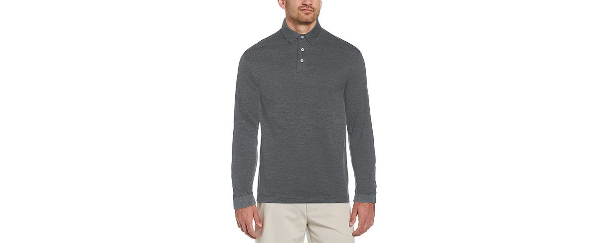 Create a pull-together look on or off the course with this PGA TOUR polo in sophisticated jacquard double-knit fabric with long sleeves for added warmth.Polo collar; three-button closure; Polyester; Machine washable; Imported