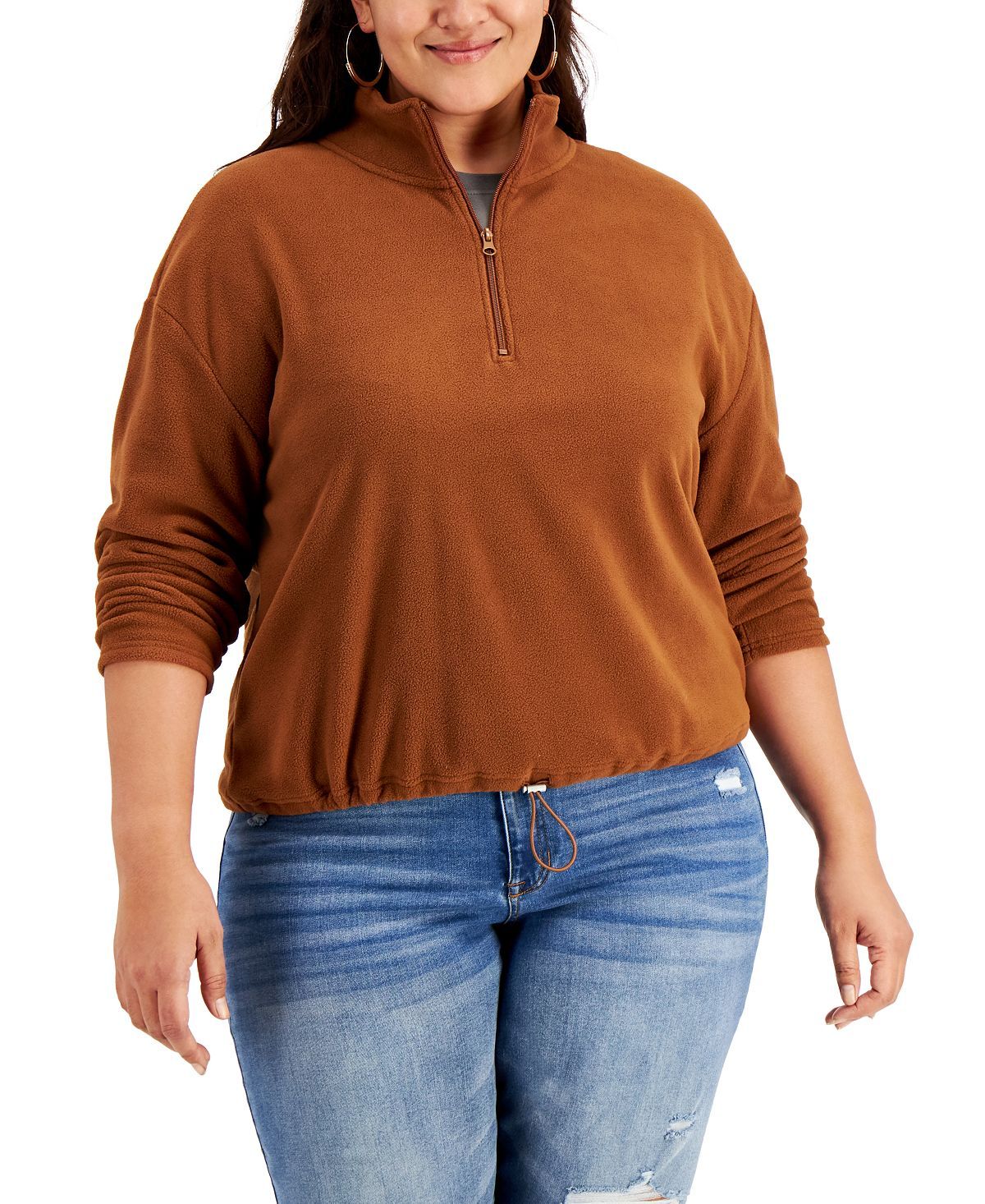 Zip up some super-soft (and cozy) style this season with a versatile fleece from Planet Gold.Approx. model height is 5'10" and she is wearing a size 2X; Stand collar; half-zip front closure; Fleece; bungee hem Polyester; Machine washable; Imported