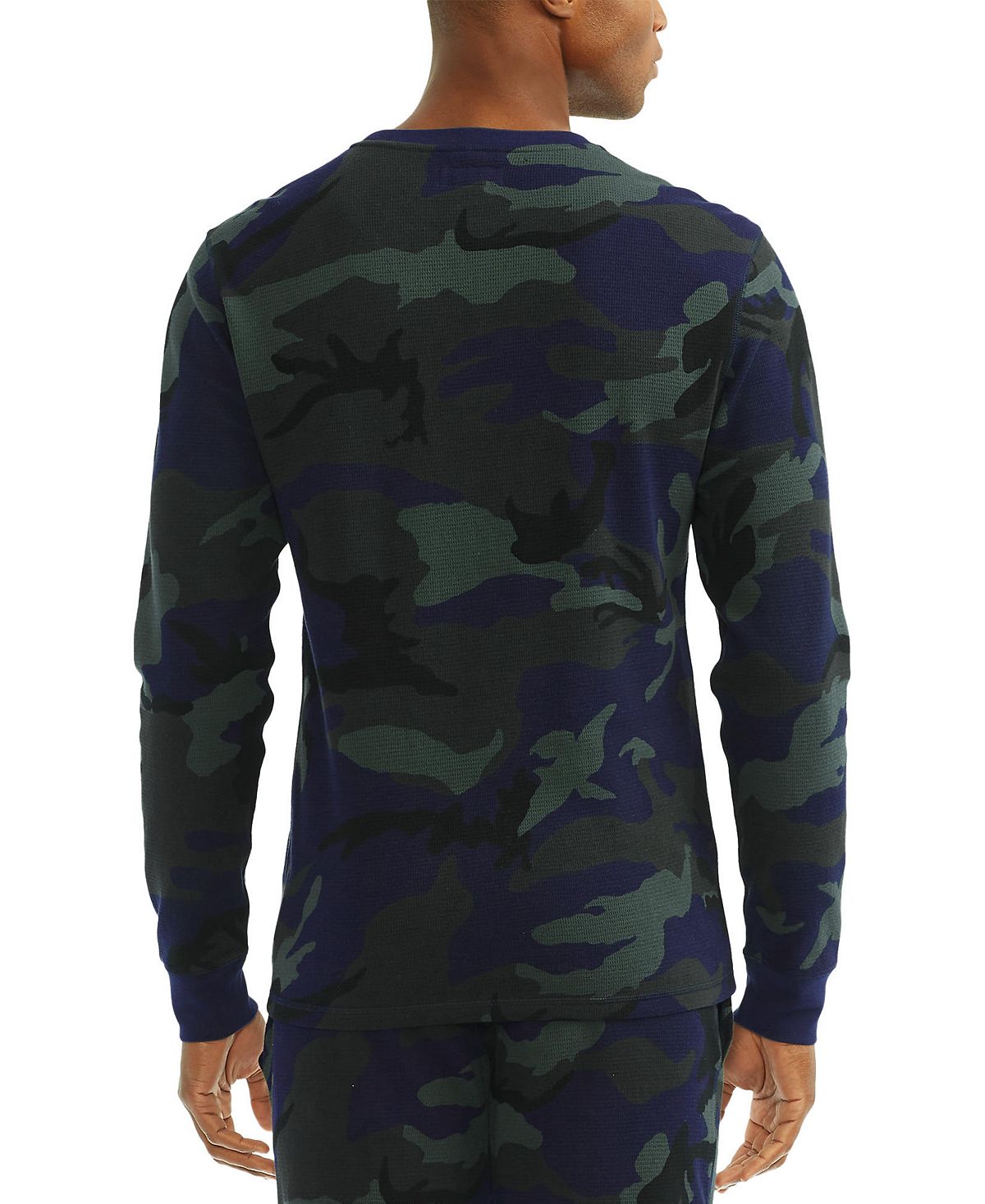 In 100 percent cotton this comfortable waffle-knit sleep shirt features a camouflage pattern and Ralph Lauren's signature Pony embroidery at the left chest. Classic fit; Model measurements: 6'1" height wearing a size medium; Ribbed crewneck; Logo at left chest; All cotton; Machine washable; Imported