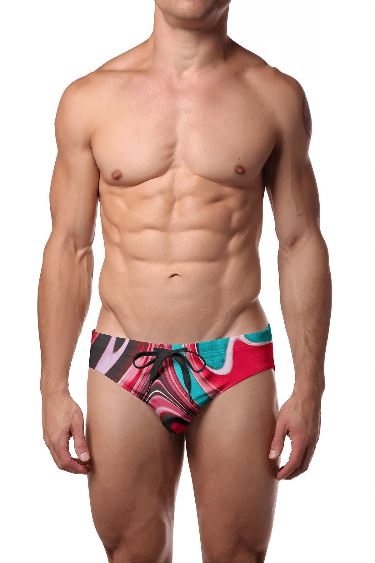 Features * Vibrant digitally printed fabric * Low rise fit * Lined front pouch * Elastic leg binding * Drawstrings & elastic waistband * Sheer rating: Medium * 80% Nylon 20% Lycra
