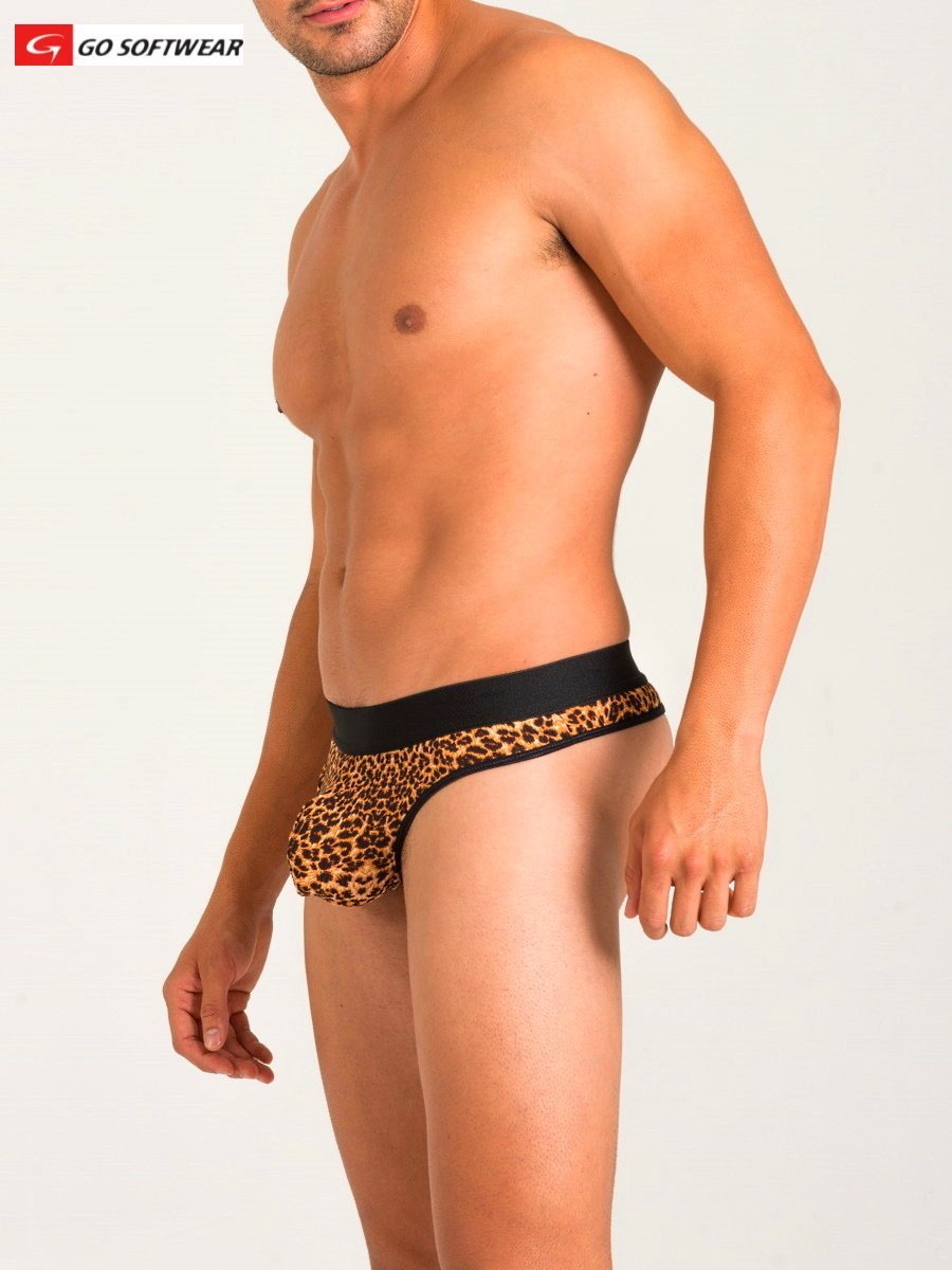 Plenty seductive and the ideal undergarment for guys with no inhibitions is one way to define this most recent creation by GO SOFTWEAR Label, part of the animal print collection. The Prowl slip thong accentuates the male form thanks to the soft rayon/spandex Cheetah print fabric that feels like a second skin. This underwear design features a 1 ½ inch waistband, spacious pouch with contrast trim and upper Y-back configuration that narrows down to a ¼ inch G-string.