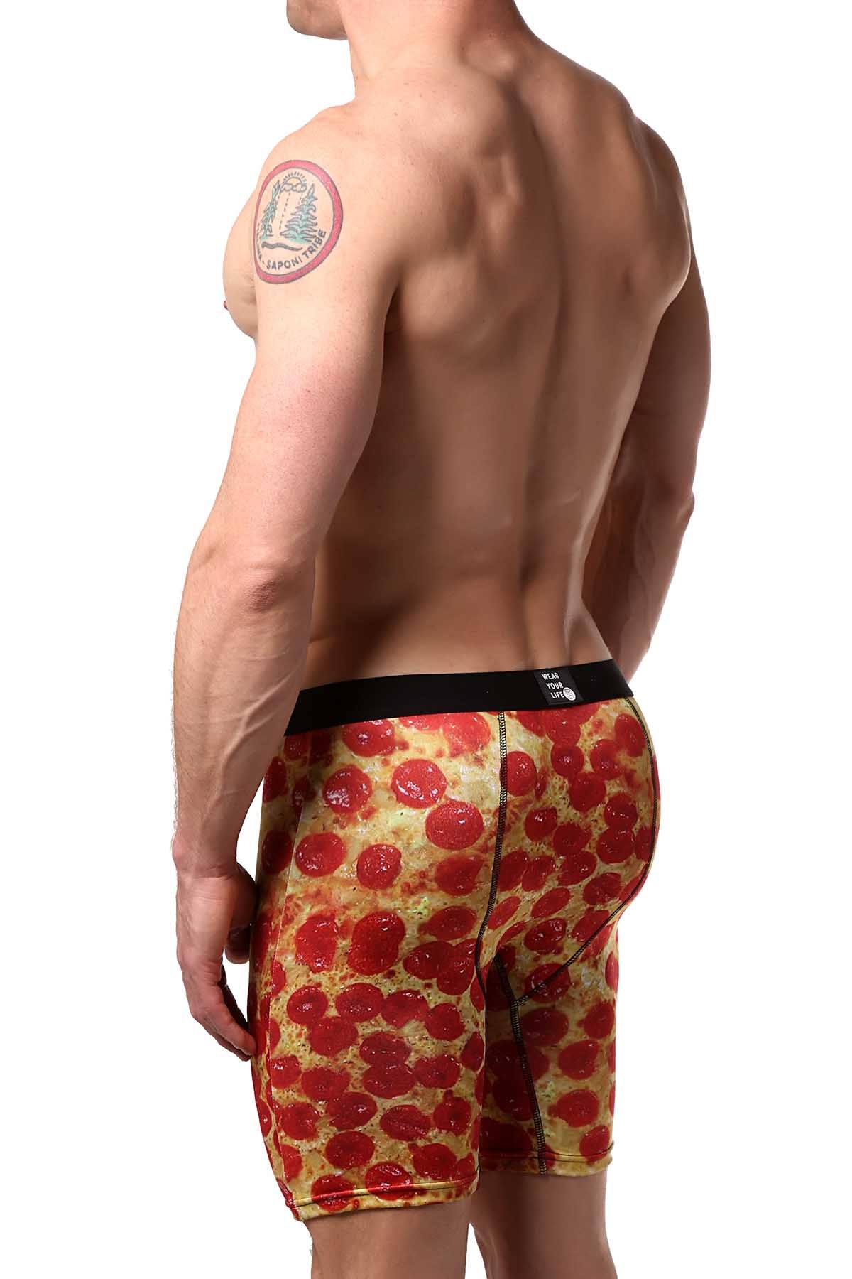 - Details: Pizza print; Low-rise waist; Graphic measure print; Four way stretch; Black stitching & piping; Inner leg panels prevent chafing and have flat-lock seams; Seamed rear.