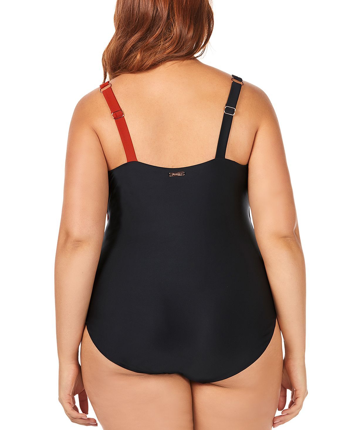 Sophisticated and sleek this plus size swimsuit from Raisins Curve a flattering one-piece that combines a playful floral print and chic colorblocking for a timeless and trendy look.Approx. model height is 5'9" and she is wearing size 16W; Non-removable cups; Moderate bottom coverage; Pull on styling; adjustable straps; Split neckline with V-wire; Lined; Nylon/spandex; lining: polyester; Hand wash; Imported