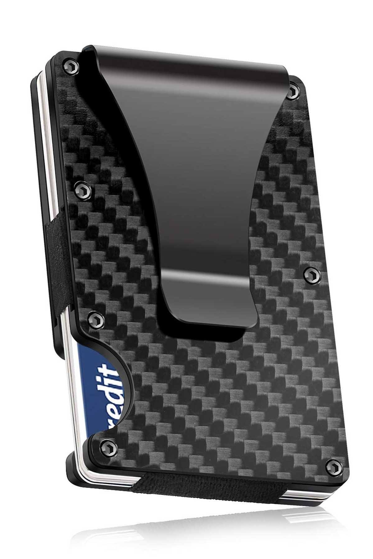 RFID Blocking Carbon Fibre Slim Card Holder W/ Money Clip