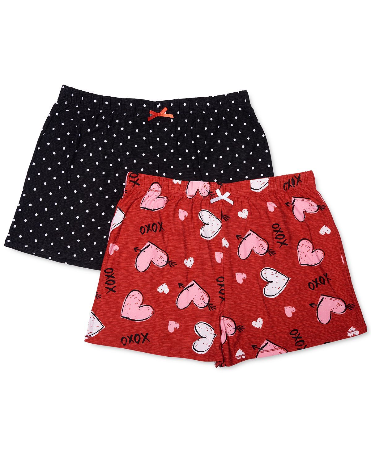 Soft and cozy fabric makes this two-pack of sleep shorts from Roudelain a night time must have.Two-pack of shorts in various designs; Length: Approx. inseam: 3"; Special Features: Contrast stitching details; Waistband: Elastic waistband with bow trim; Polyester/spandex; Machine washable; Imported