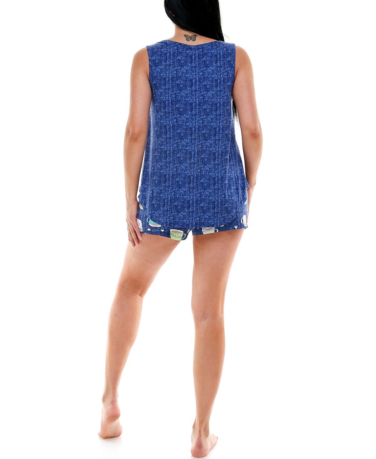 Add some fun to bed time with Roudelain's cute and comfy tank top and shorts pajama set.Top: approx. 26" long; graphic print at front; V-neck; pullover styling; sleeveless; Bottom: inseam approx. 3-1/2"; faux button fly; elastic paperbag waist; Polyester/spandex; Machine washable; Imported