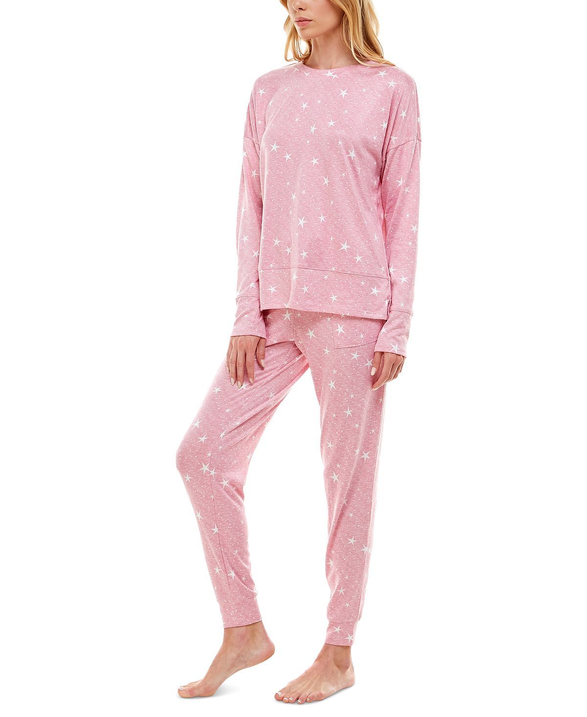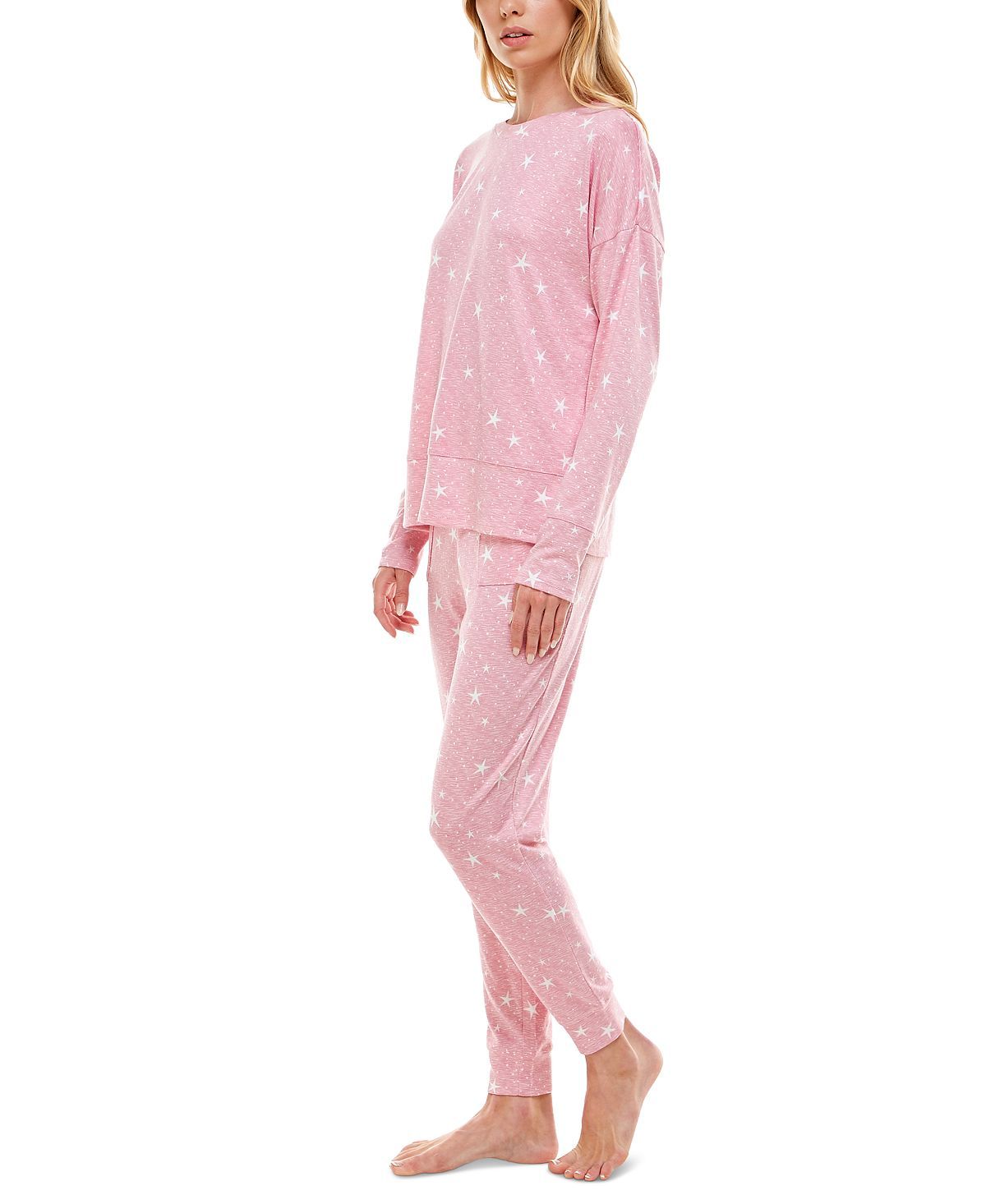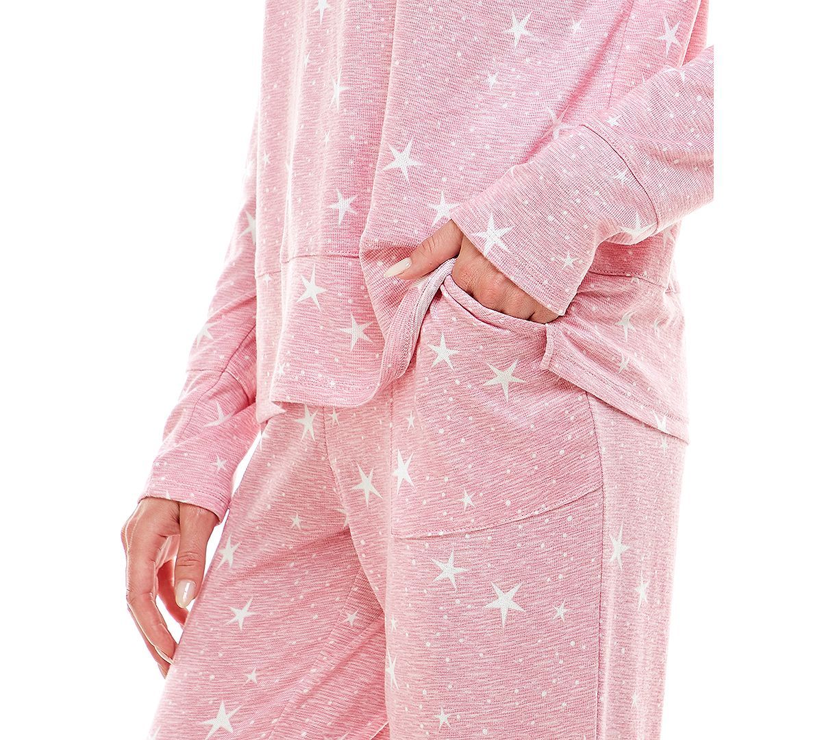 So soft and comfy you'll never want to take them off. Relax in style with this pajama set from Roudelain. Top: approx. 25" long; round neck; pullover styling; drop-shoulder long sleeves; Bottom: approx. inseam: 29"; cinched hem; side pockets; elastic waist; Polyester/spandex; Machine washable; Imported