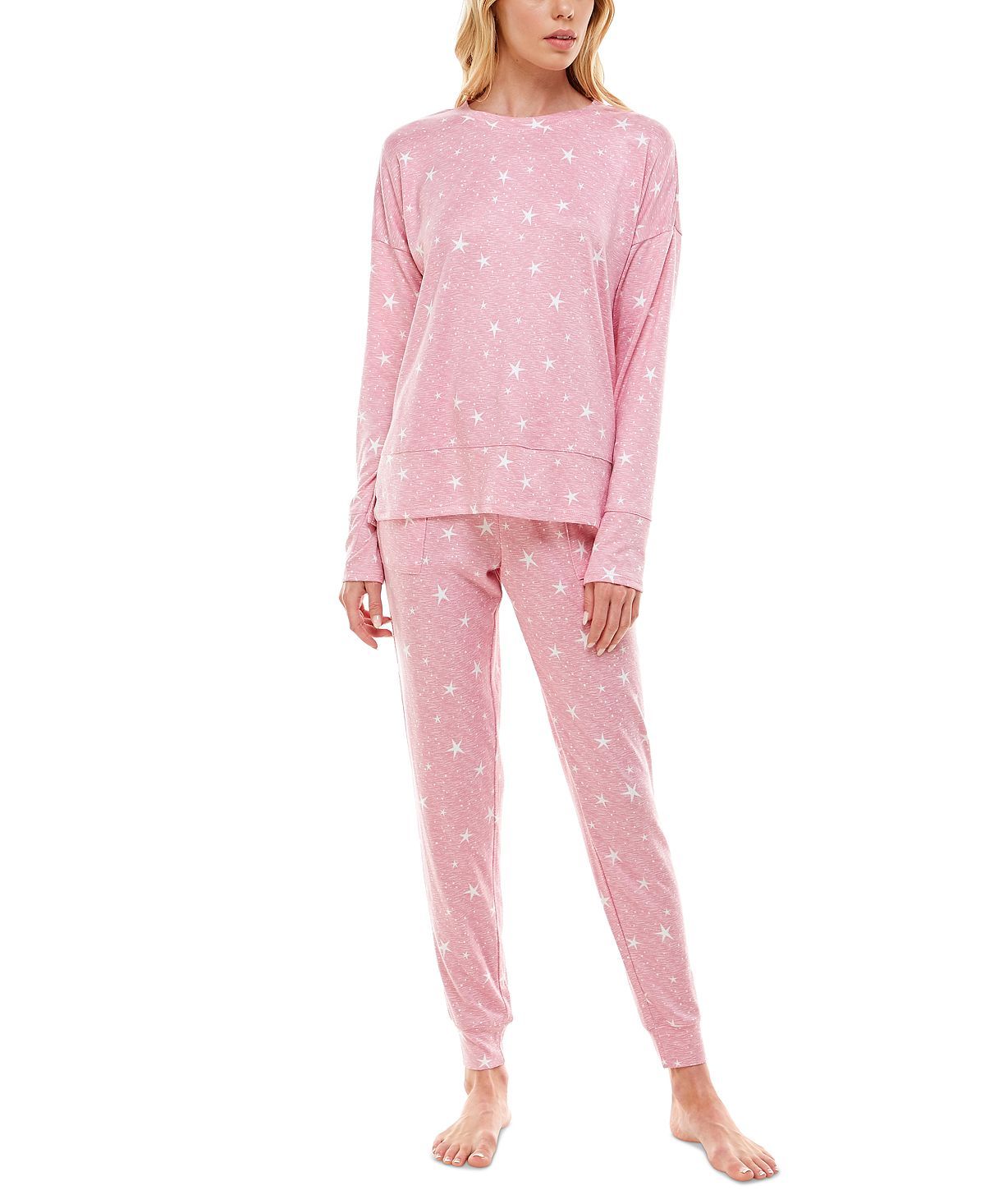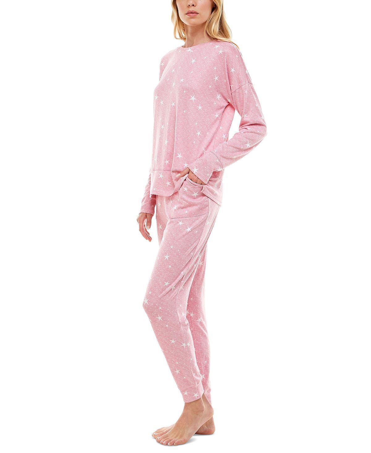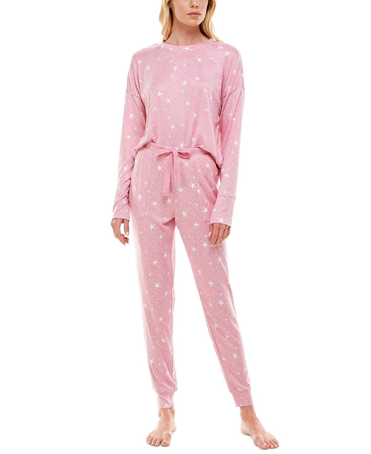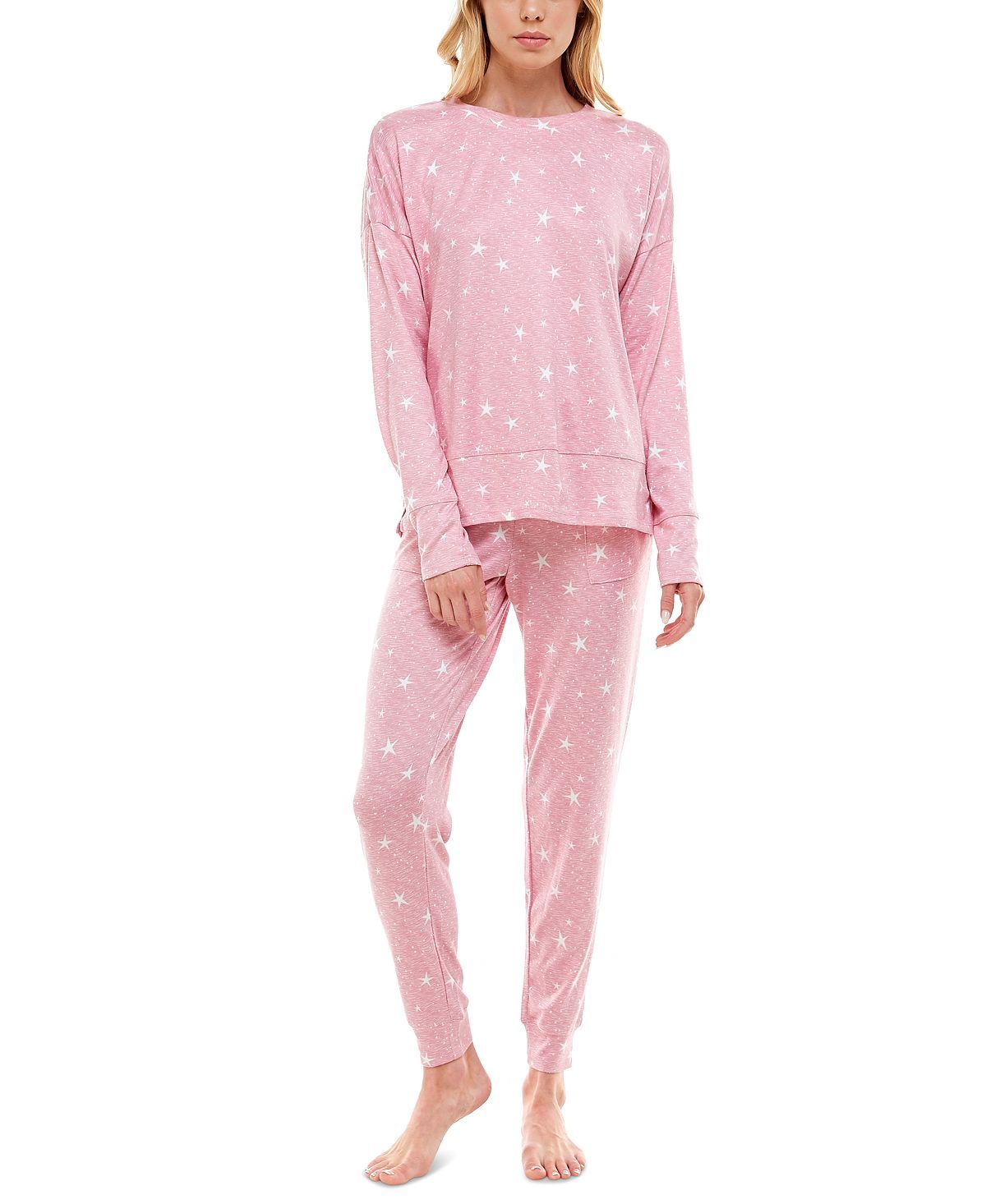 So soft and comfy you'll never want to take them off. Relax in style with this pajama set from Roudelain. Top: approx. 25" long; round neck; pullover styling; drop-shoulder long sleeves; Bottom: approx. inseam: 29"; cinched hem; side pockets; elastic waist; Polyester/spandex; Machine washable; Imported