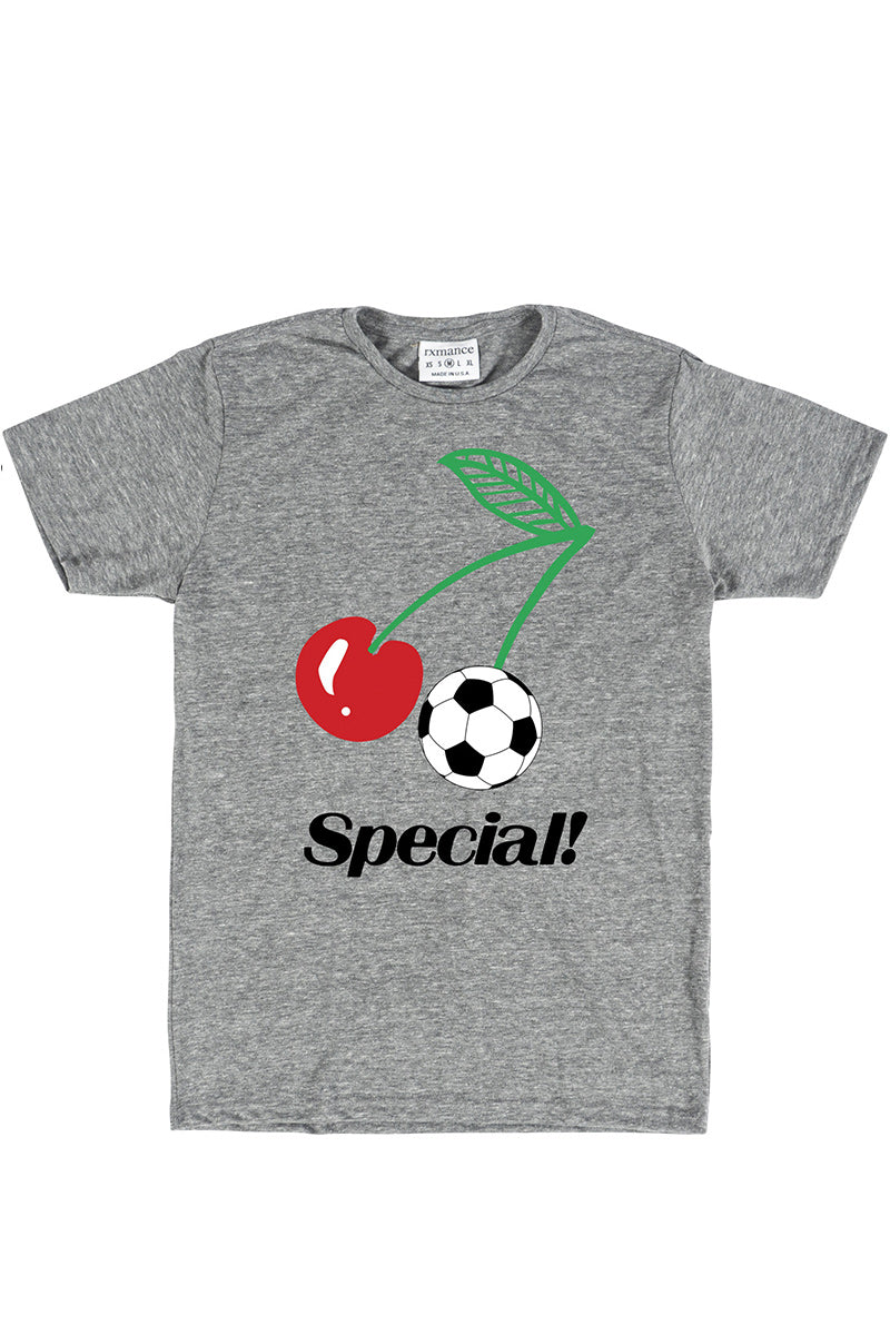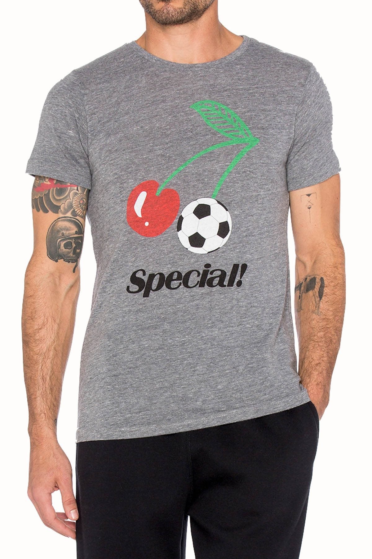 Fun "SPECIAL!" Soccerball/Cherry Frontside Graphic Print.