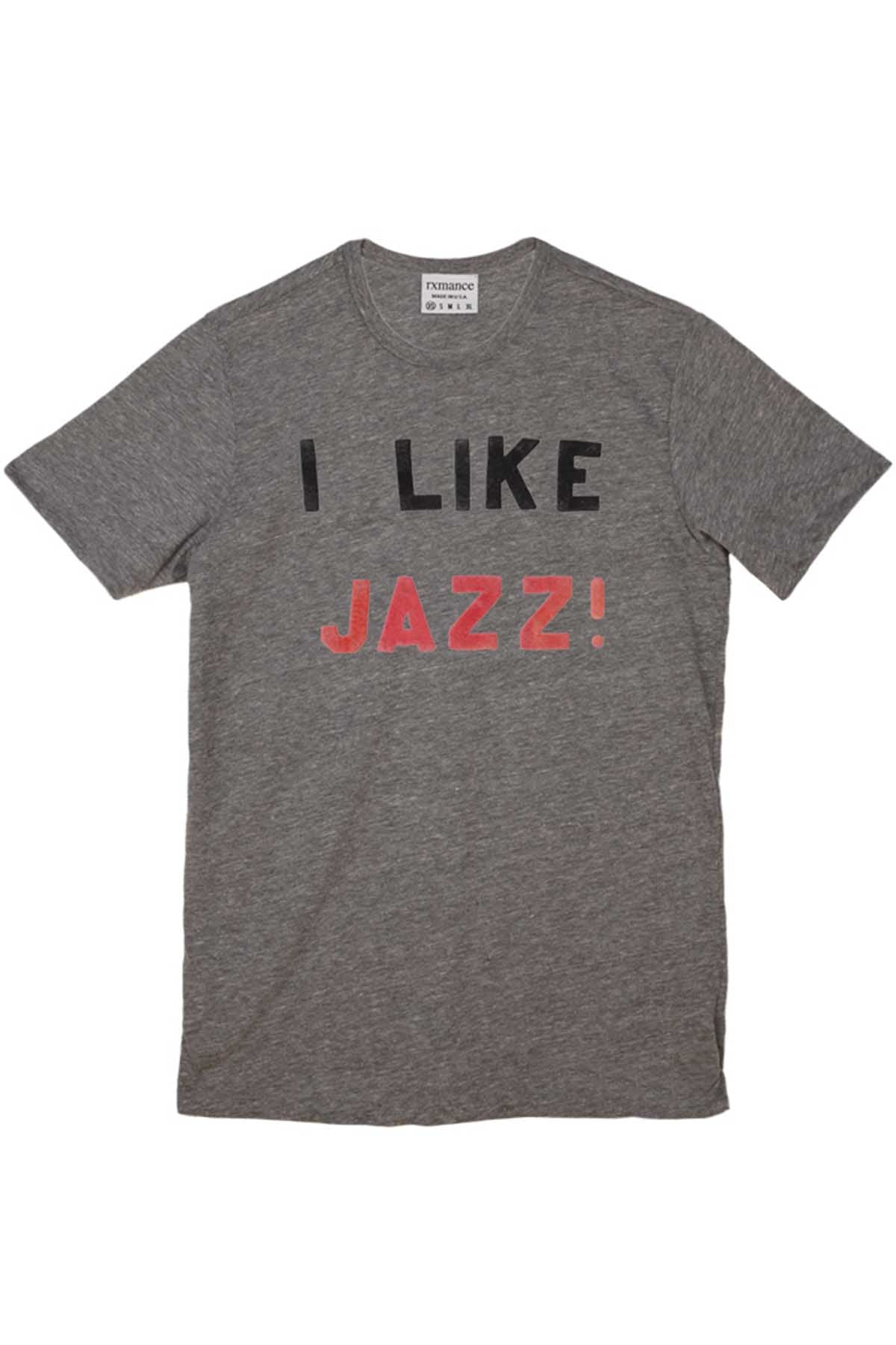 Two-tone 'i like jazz! ' block lettering details the front of this super-soft cotton tee.
