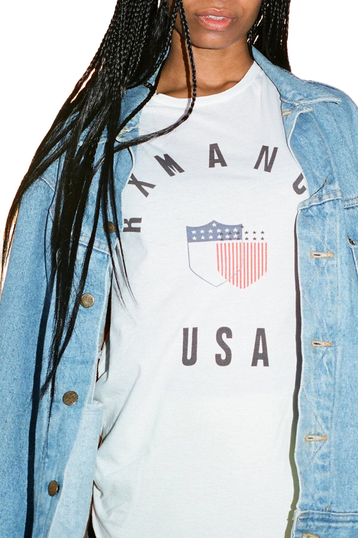 Fun "RXMANCE USA" and American-Flag Crest front graphic print