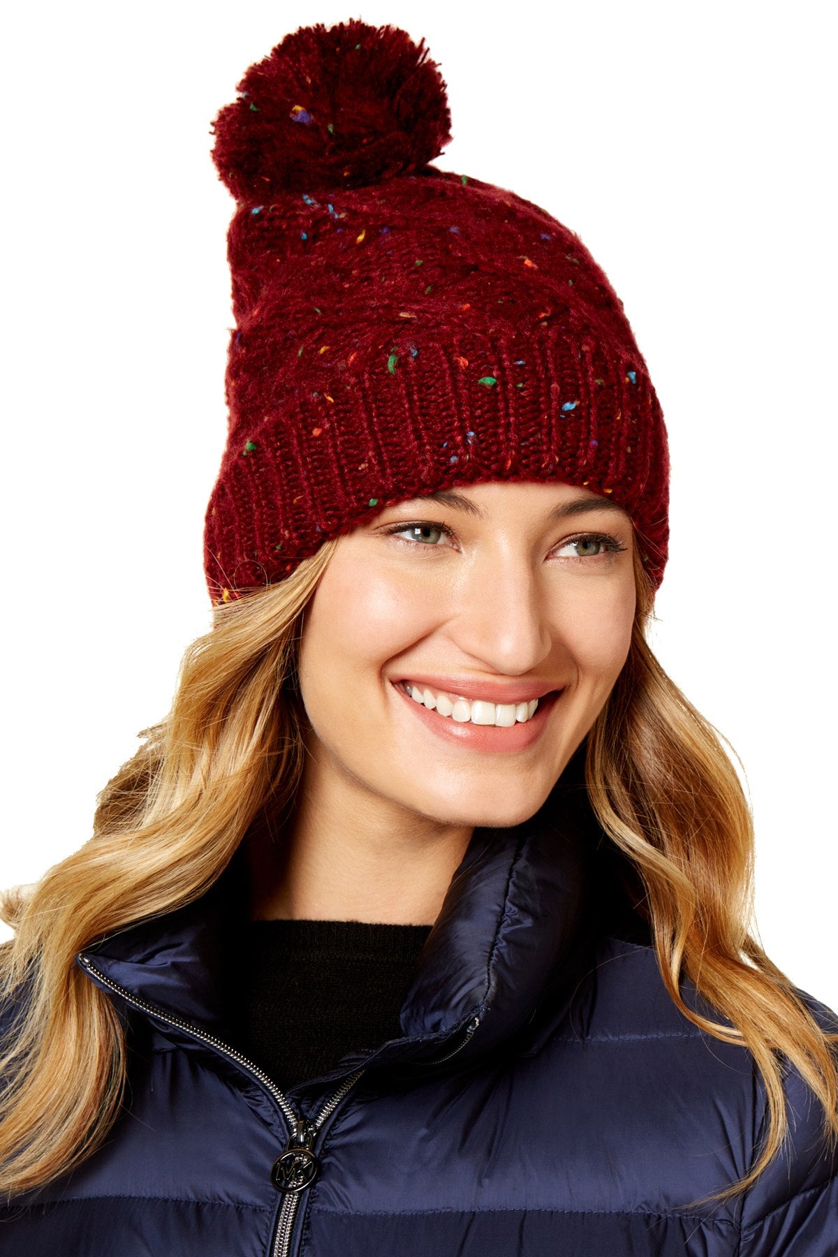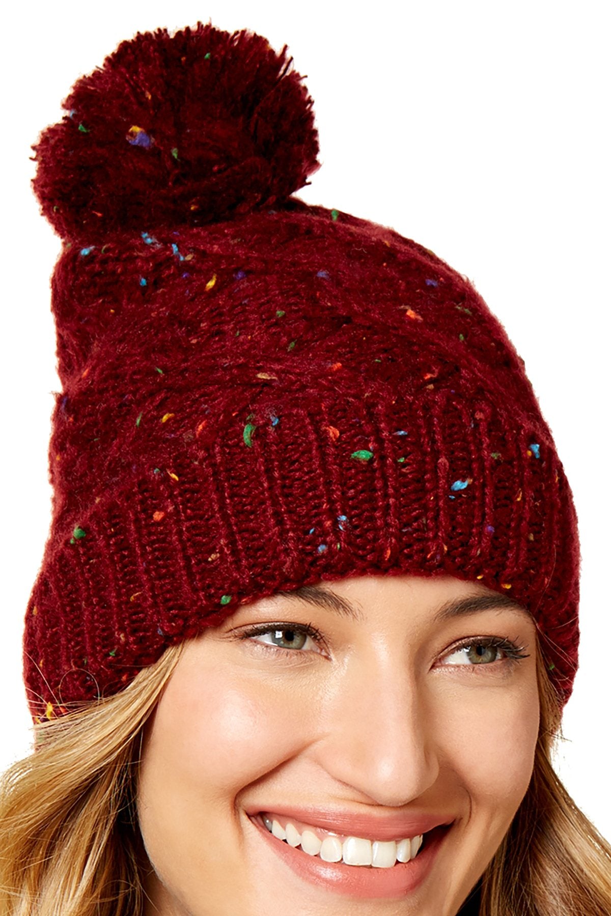 Steve Madden Maroon Speckled Cable-Knit Beanie
